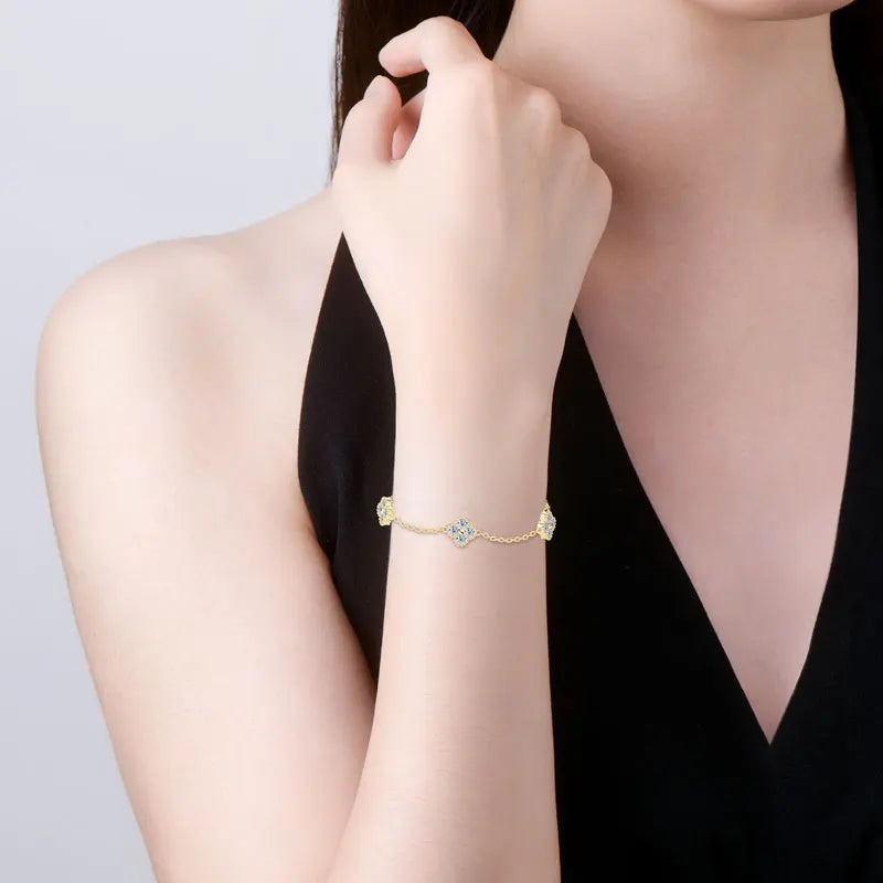 Anizw 2025 New 925 Silver Flower Clover Bracelet Moissanite 3mm for Women 18k Gold Plated Fine Jewelry Certified Lab Diamond D-E