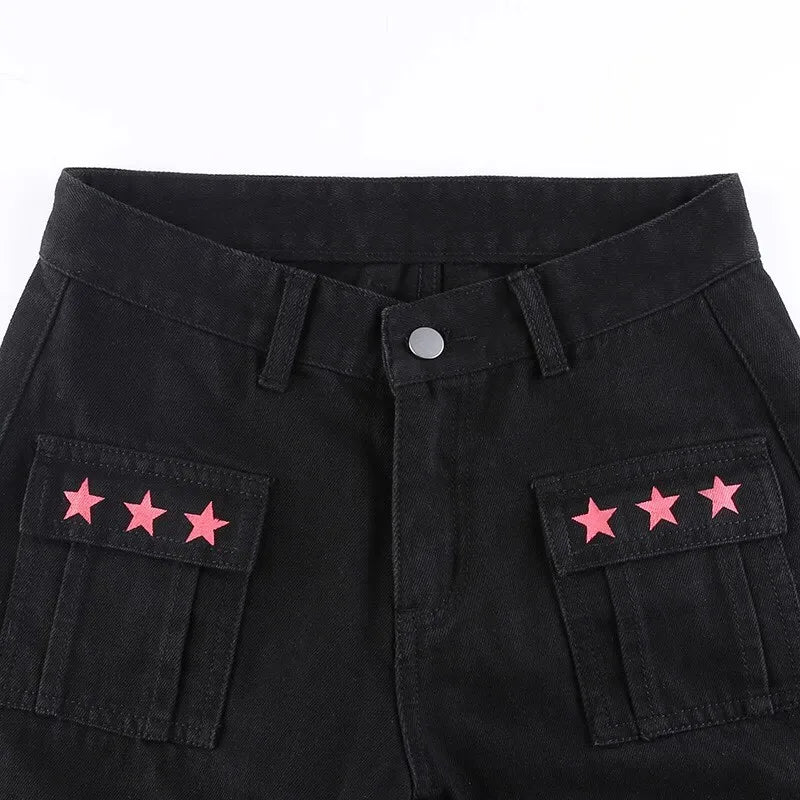 Crafted from high-quality denim, these jeans offer a perfect fit that flatters every body type. Whether you’re looking for jeans for curvy women or a sleek pair of black jeans women love, these Y2K jeans deliver. The dark wash and unique design elements make them versatile enough to pair with any top, from casual tees to elegant blouses.