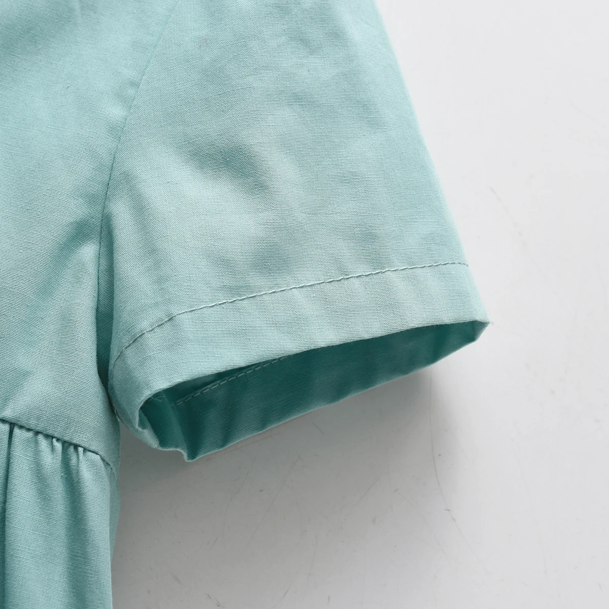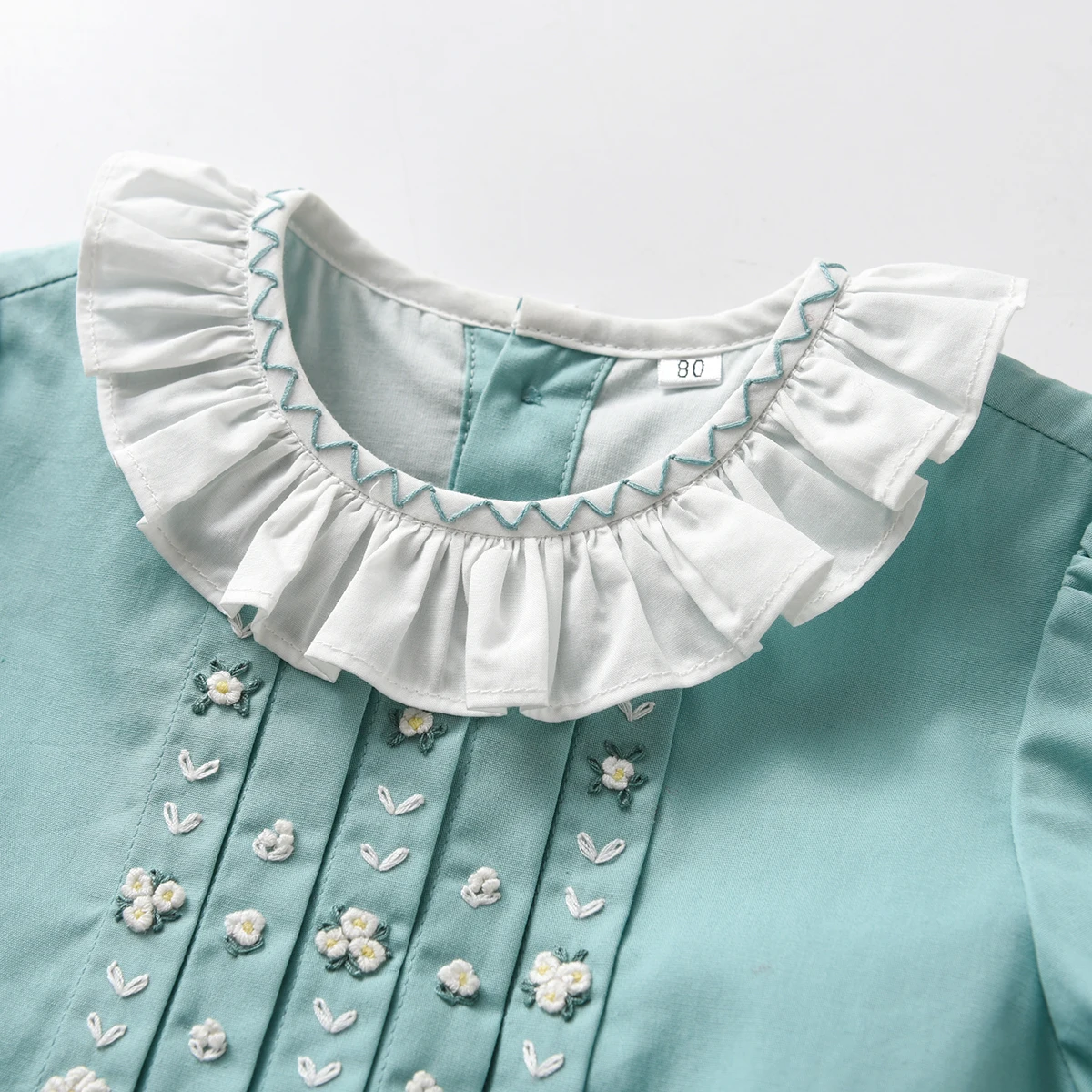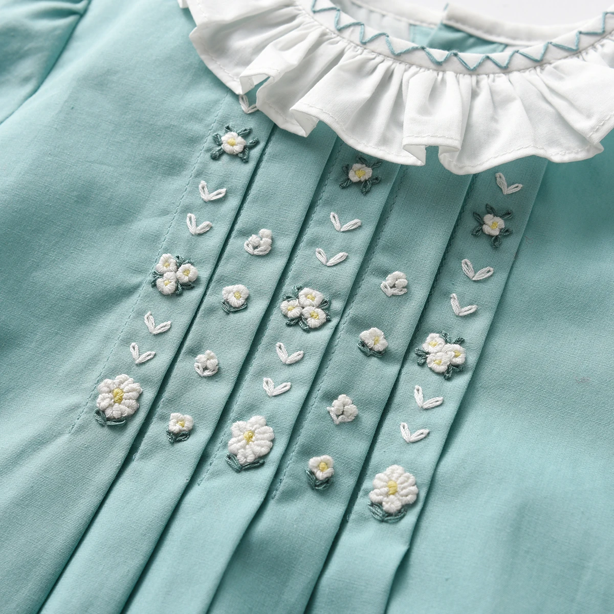 Baby Girls Hand Made Embroidery Dress Children Short Sleeve Frock Ruffle Collar