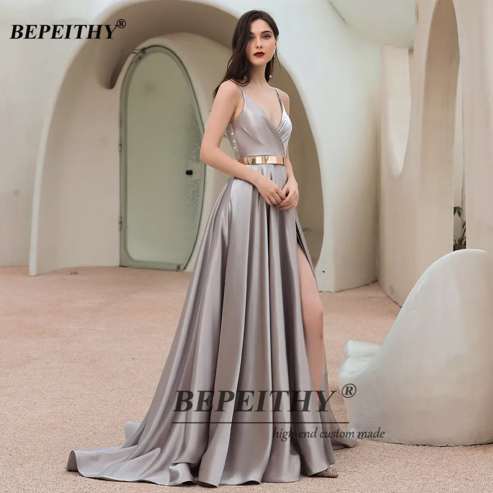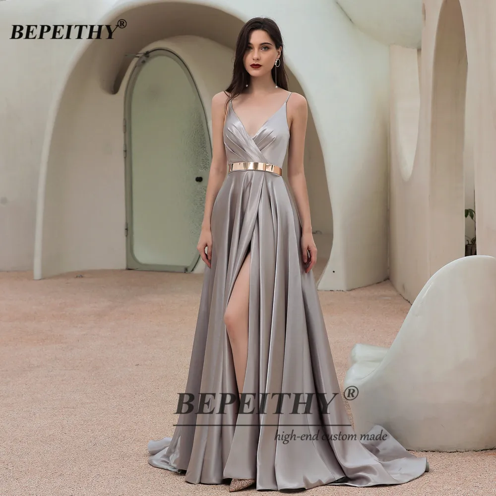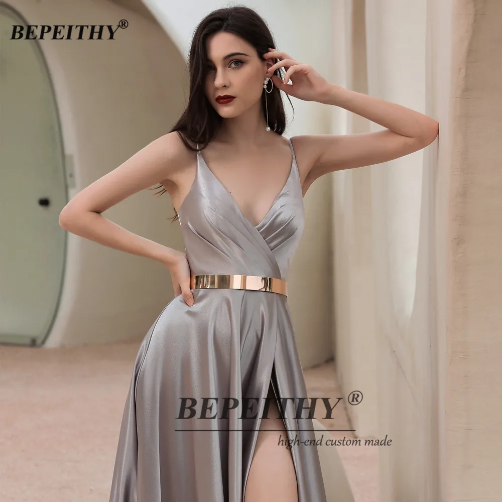 The high slit adds a touch of drama and sophistication, creating a look that's both elegant and alluring. It's a stylish detail that enhances the overall glamour of the dress and allows for ease of movement.