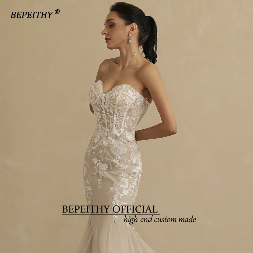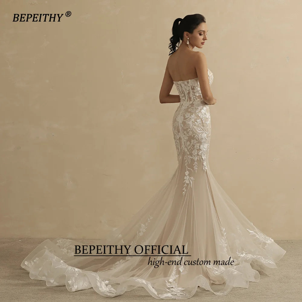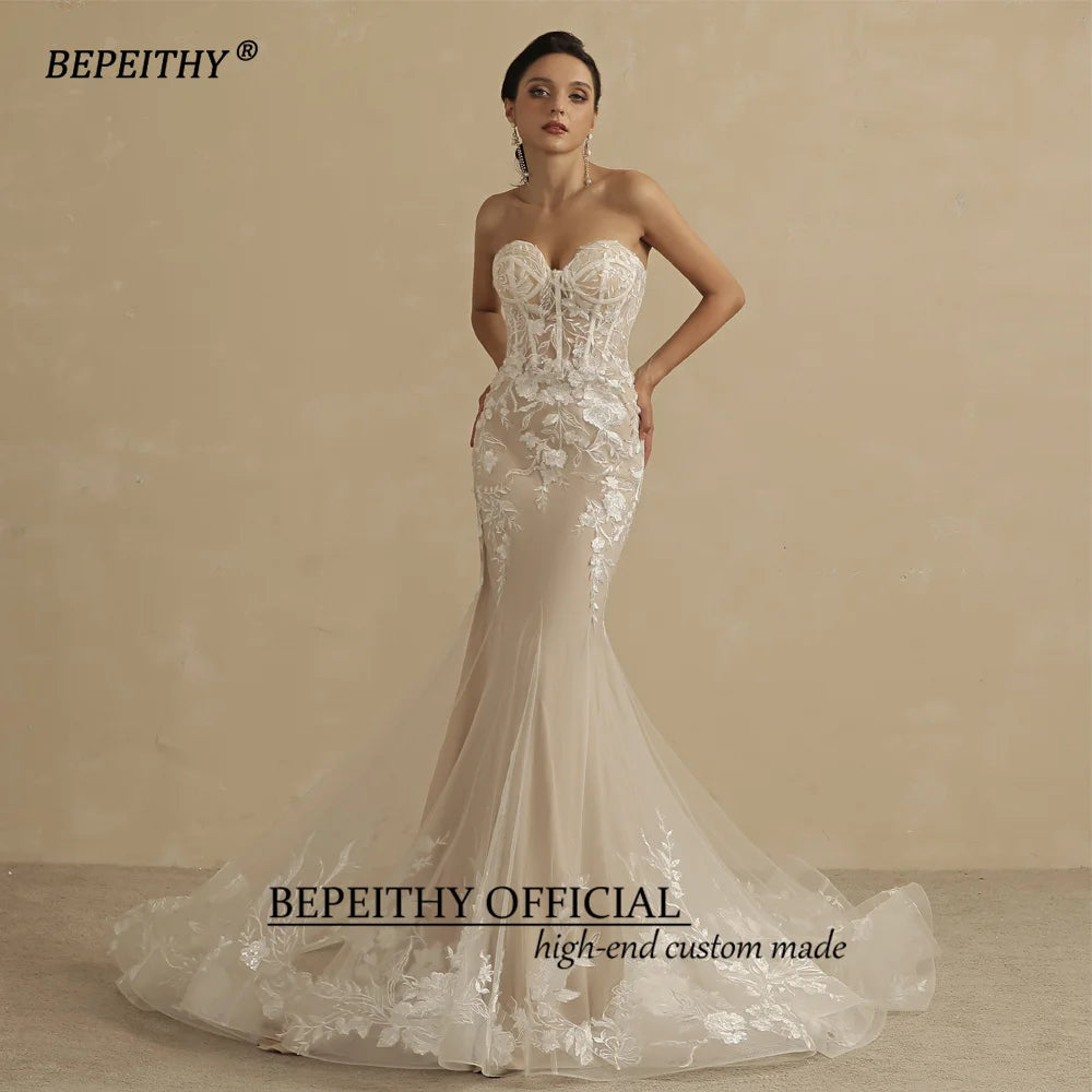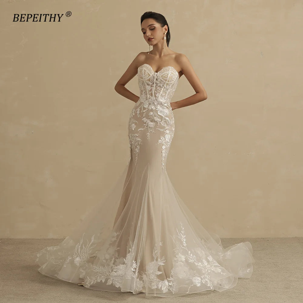 Elegance Redefined: Champagne Mermaid Wedding Dress for Women Ivory