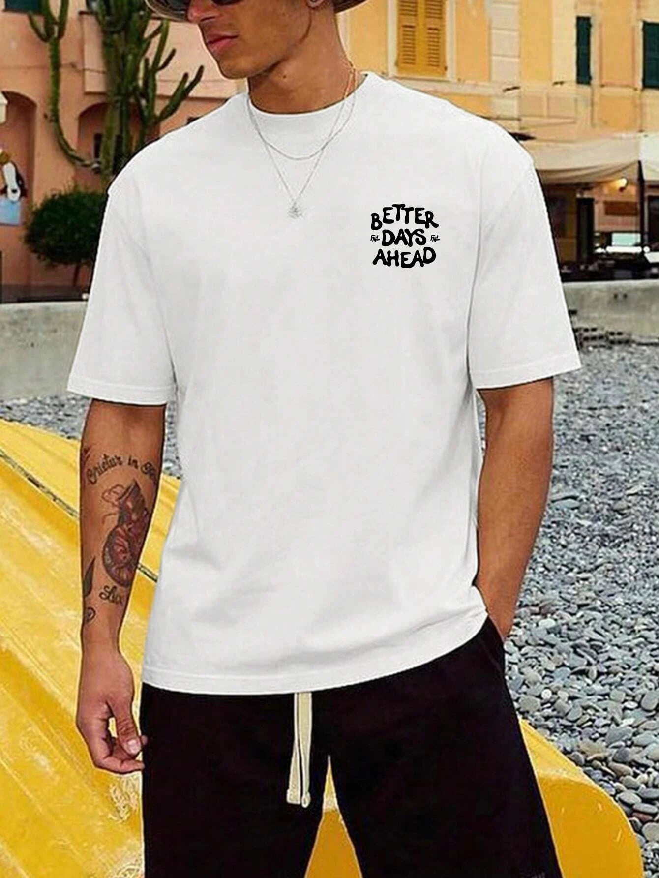 Better Days Ahead Men Cotton T-shirt Luxury Brand Fashion Big Size Top Casual Short Sleeve Streetwear Classic New Arrival Tee