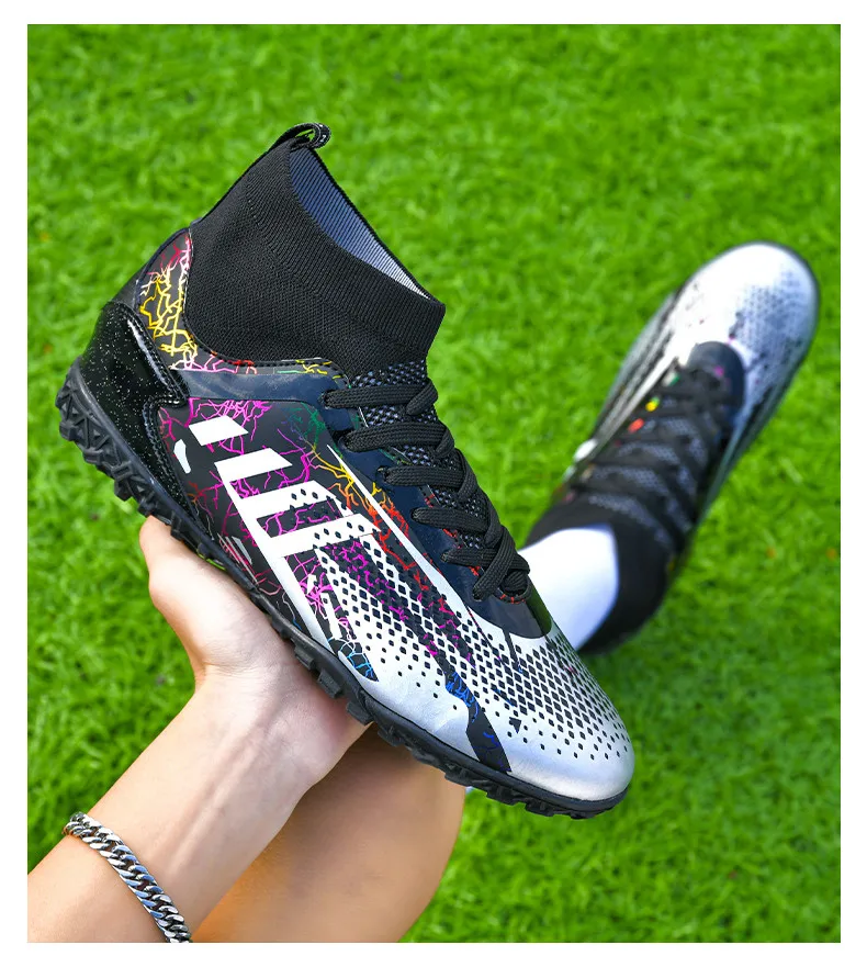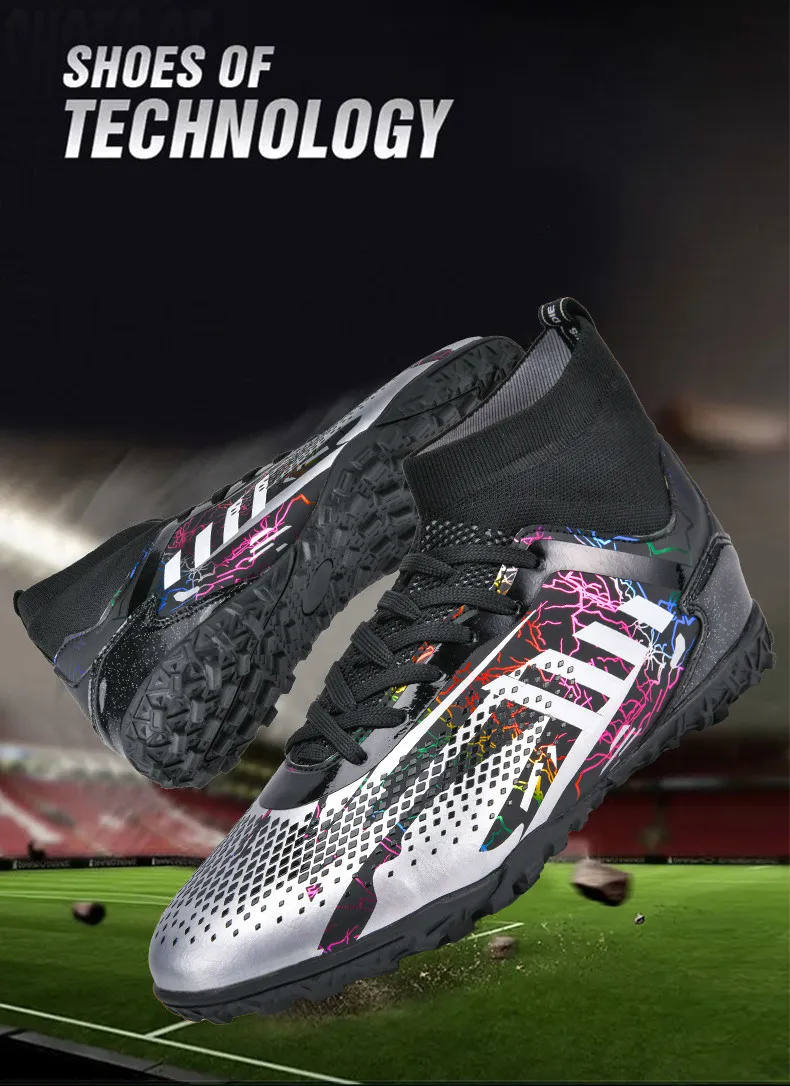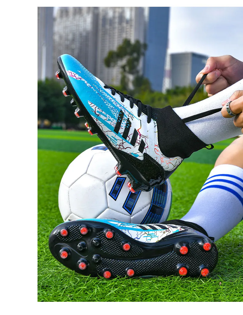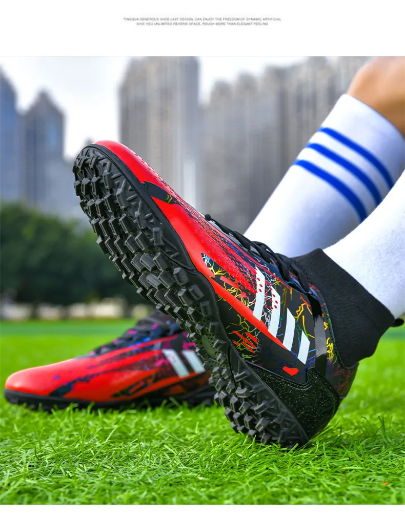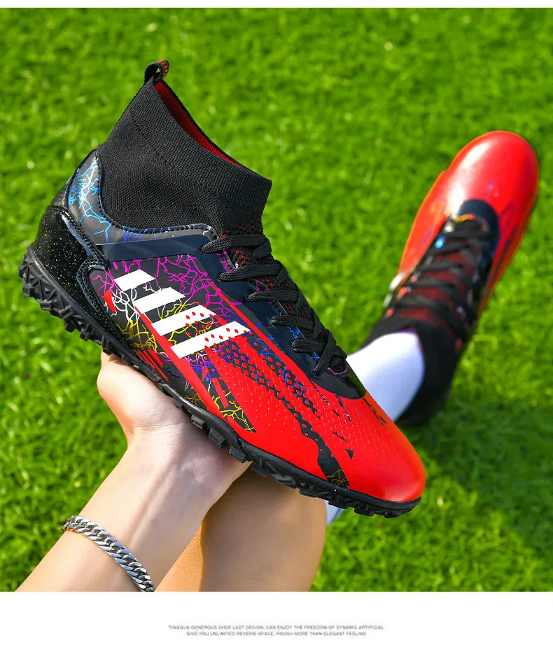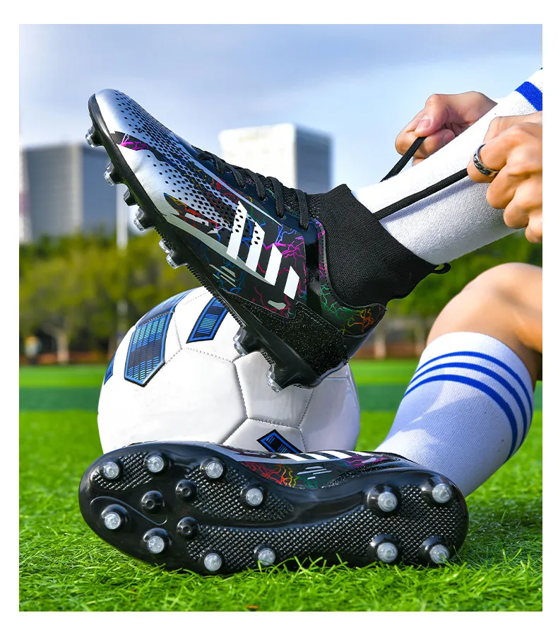 • Durable Construction: Crafted from high-quality materials, these football shoes are built to last. The reinforced toe box and robust upper protect your feet from impact, while ensuring the boots maintain their shape over time.