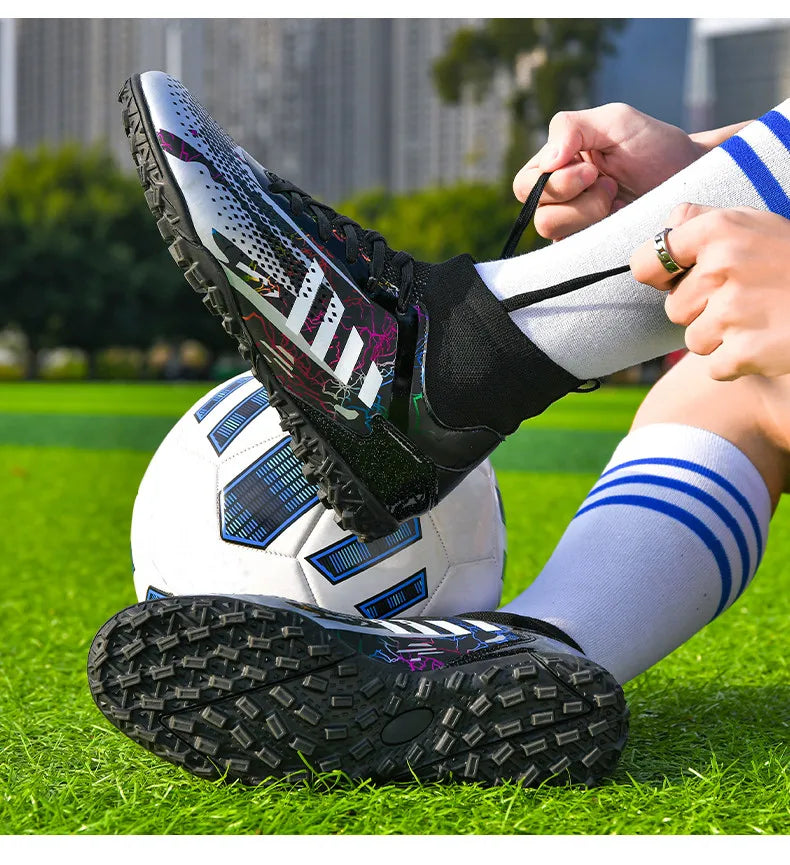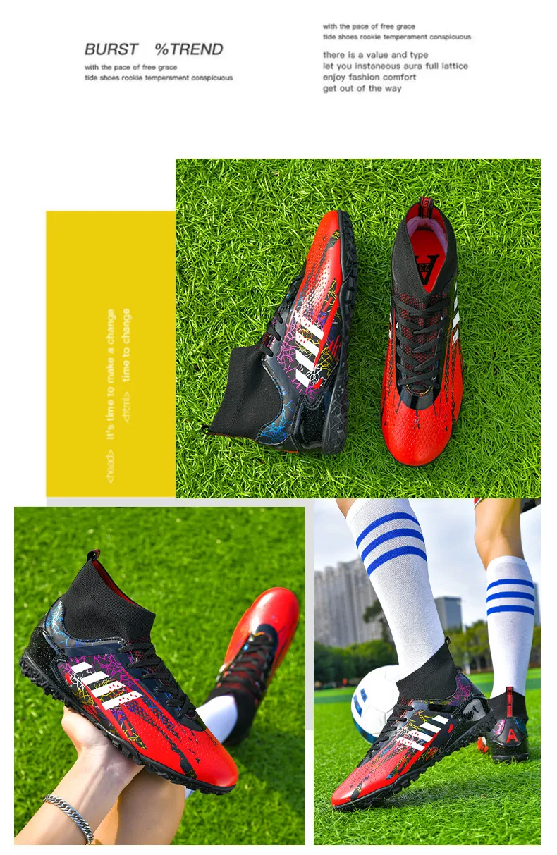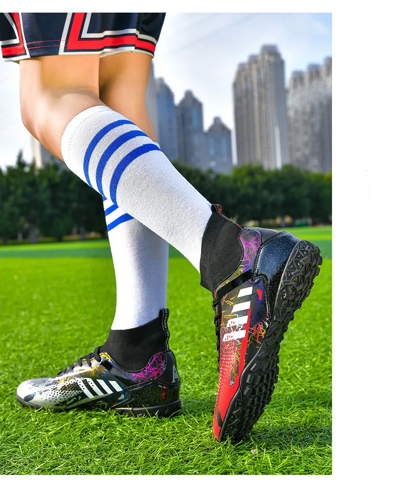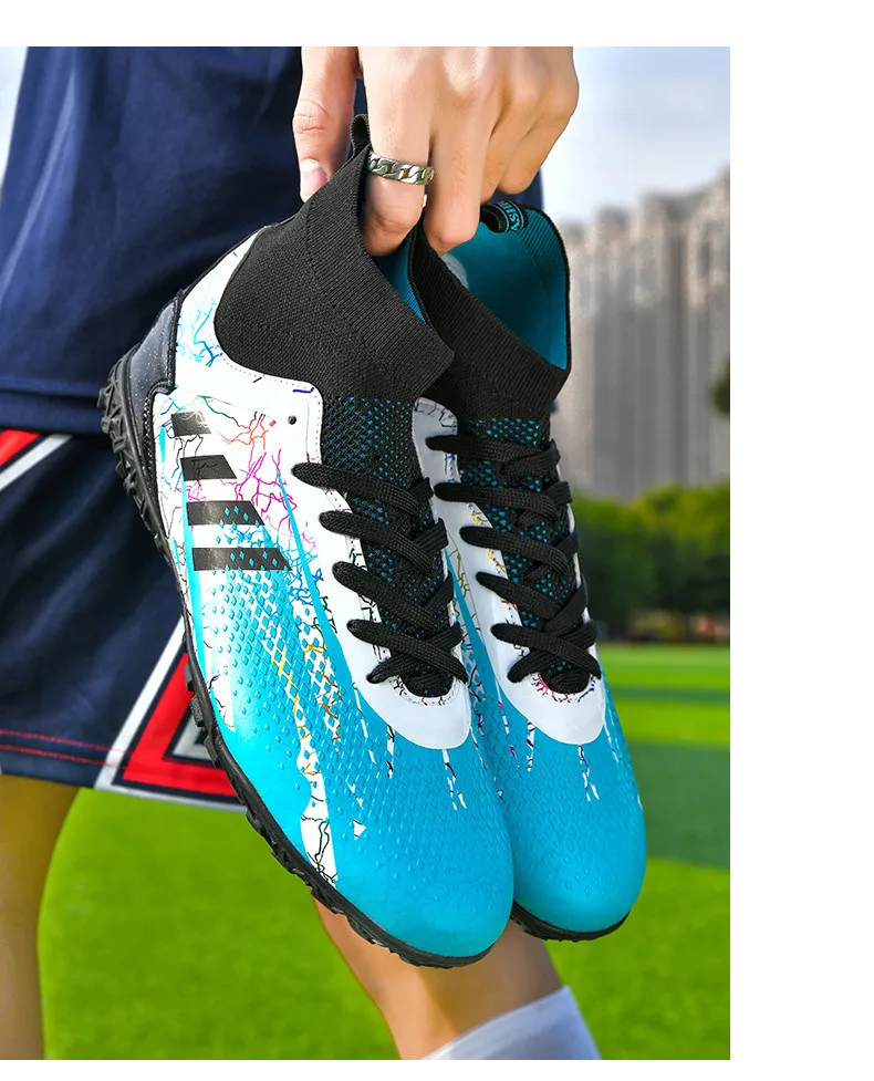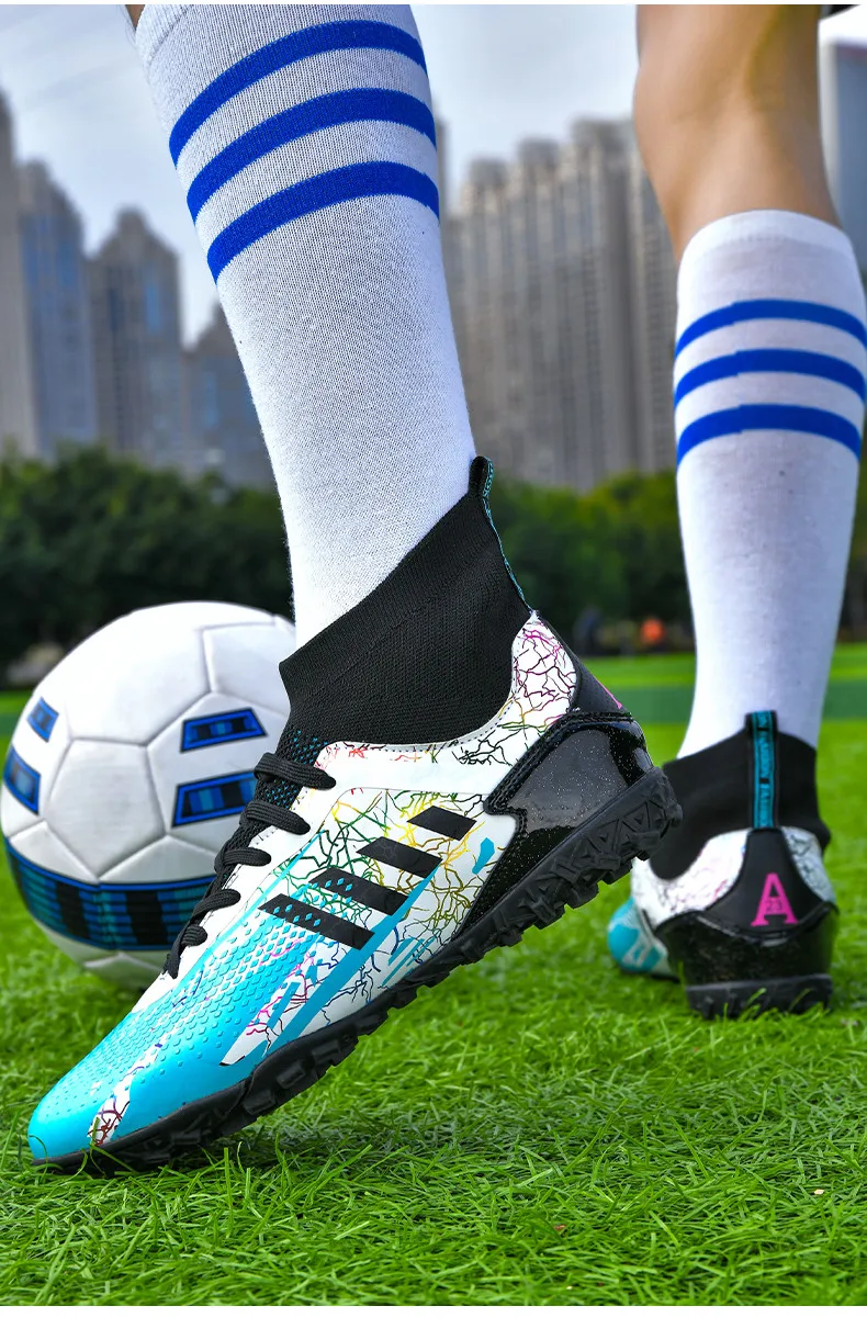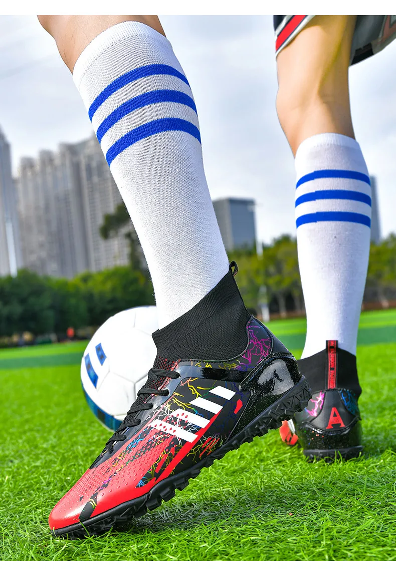• Durable Construction: Crafted from high-quality materials, these football shoes are built to last. The reinforced toe box and robust upper protect your feet from impact, while ensuring the boots maintain their shape over time.
