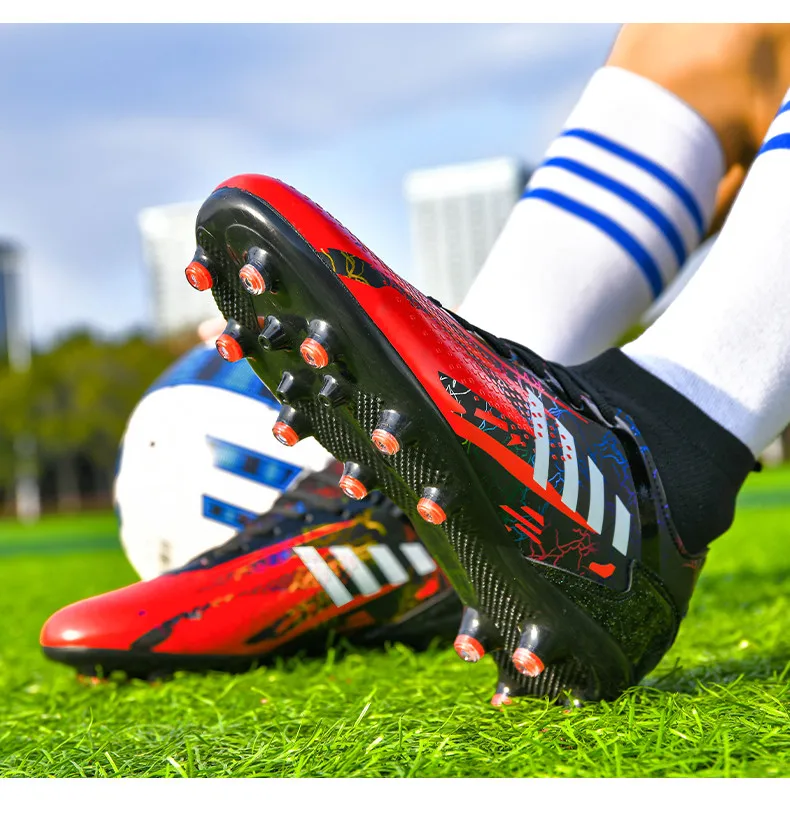 • Black Red Men's Football Boots Size 47 Non-slip Turf Soccer Shoes for Men Studded Boots Brand Soccer Sneakers Football Crampons