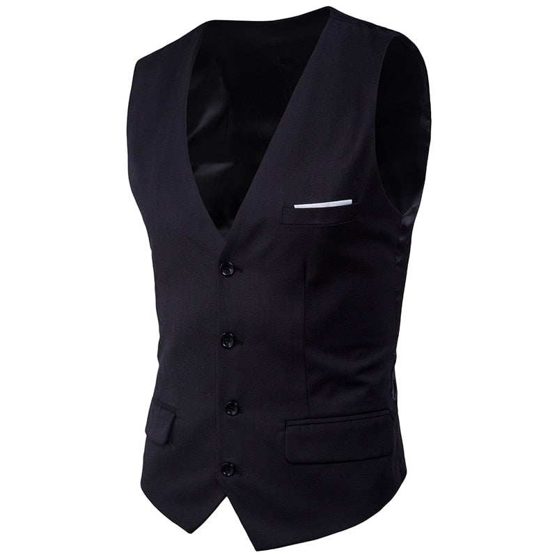 Black Suit Vest Waistcoat Men Slim Fit V Neck Dress Vests Mens