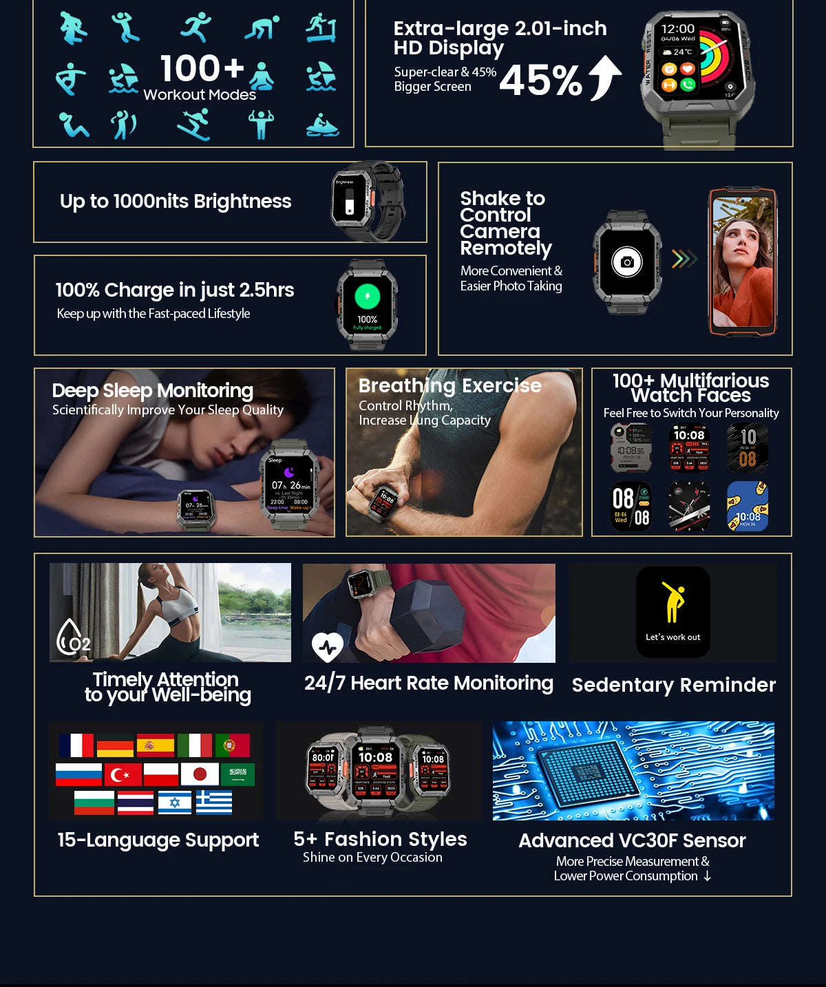 Display Screen: 2.01" TFT HD Display, resolution 280 * 320 HD, G + F full screen touch.