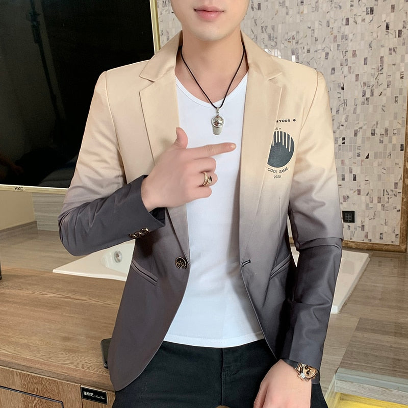 Blazer Men New Male Gradient Suit Jacket Masculino Korean Style Slim Fit Casual Men Fashion Trend Dress Jacket