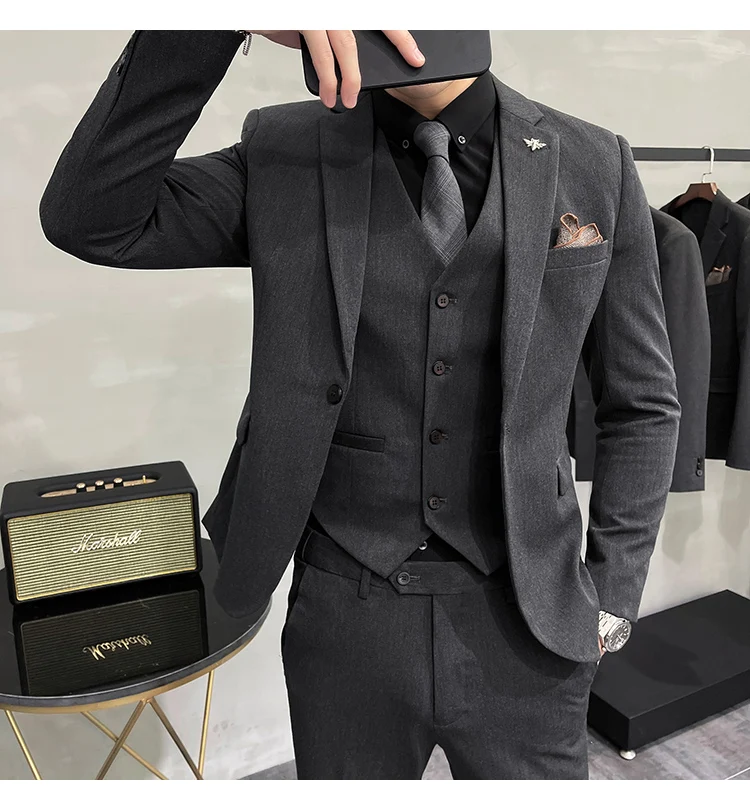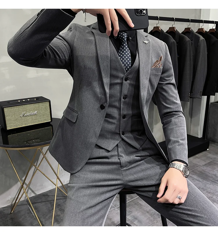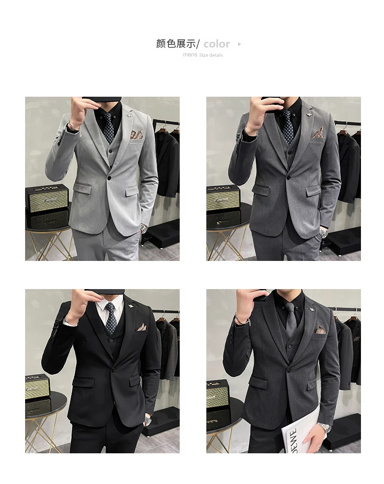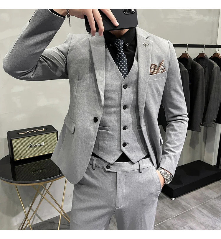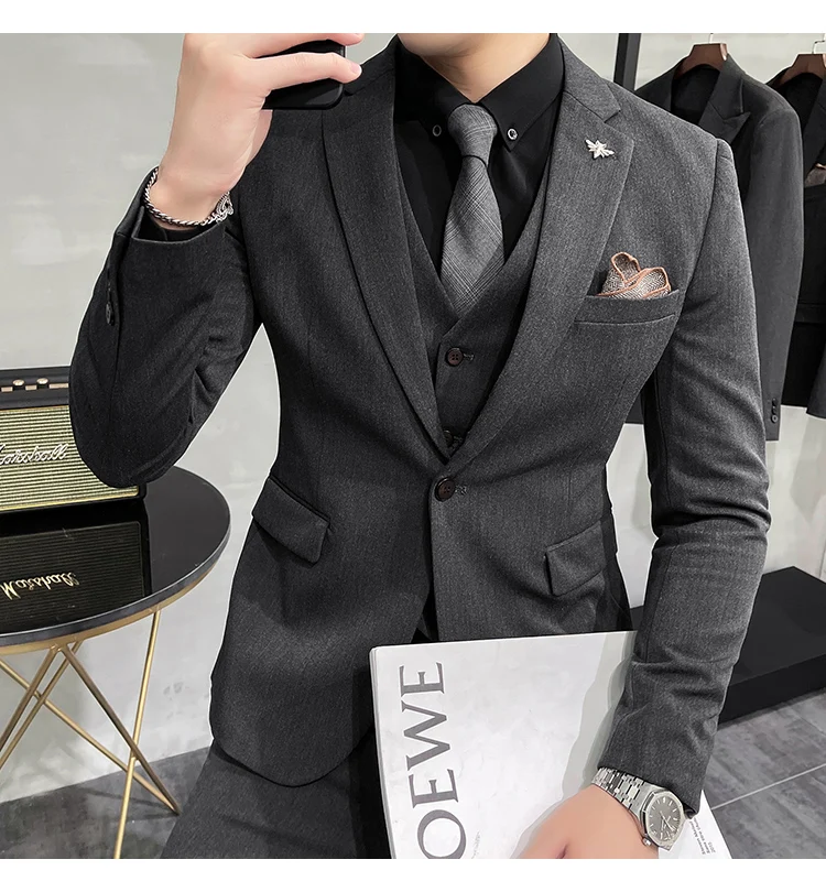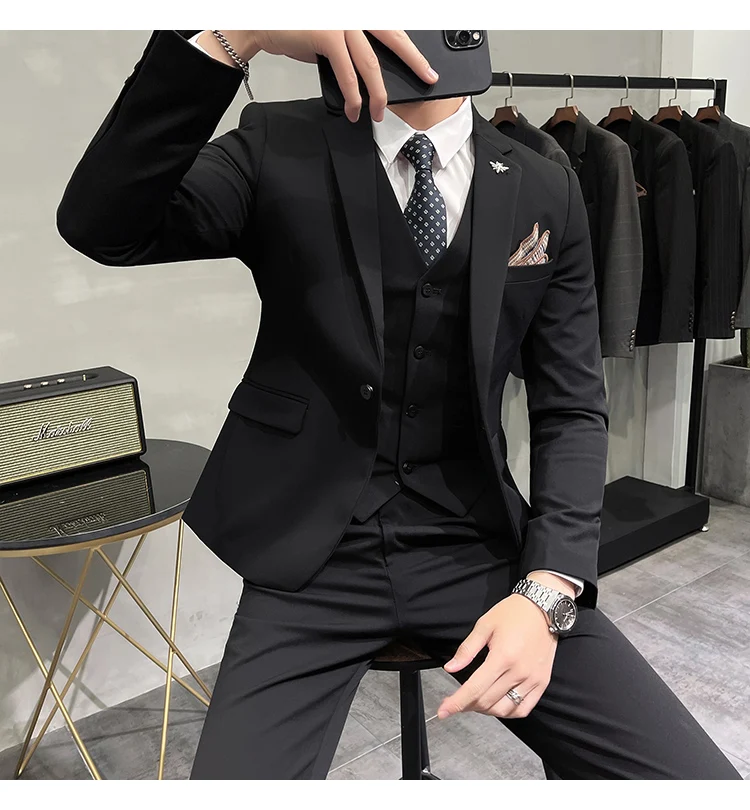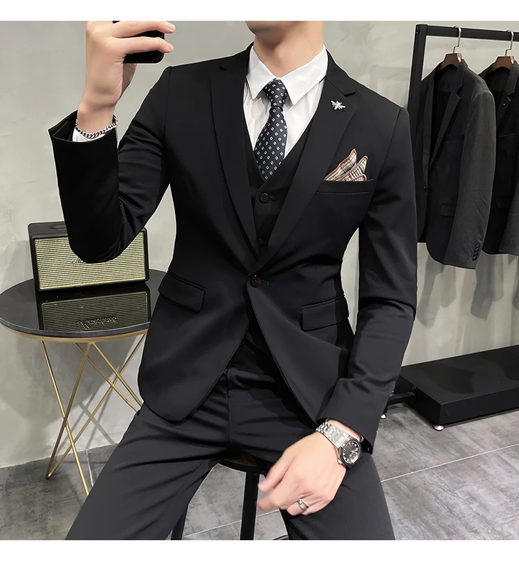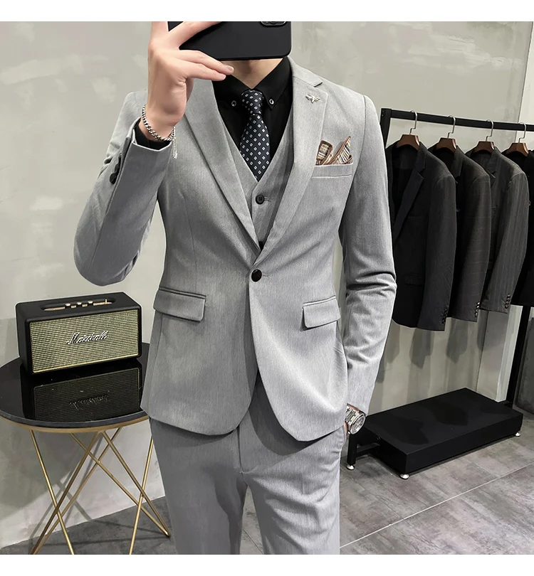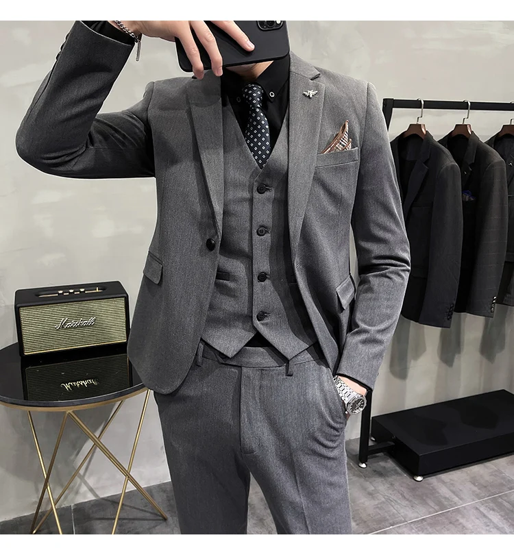 Blazers Vest Pants High Grade Fashion Pure Color Men’s Slim Formal Business Suit: Elevate Your Style