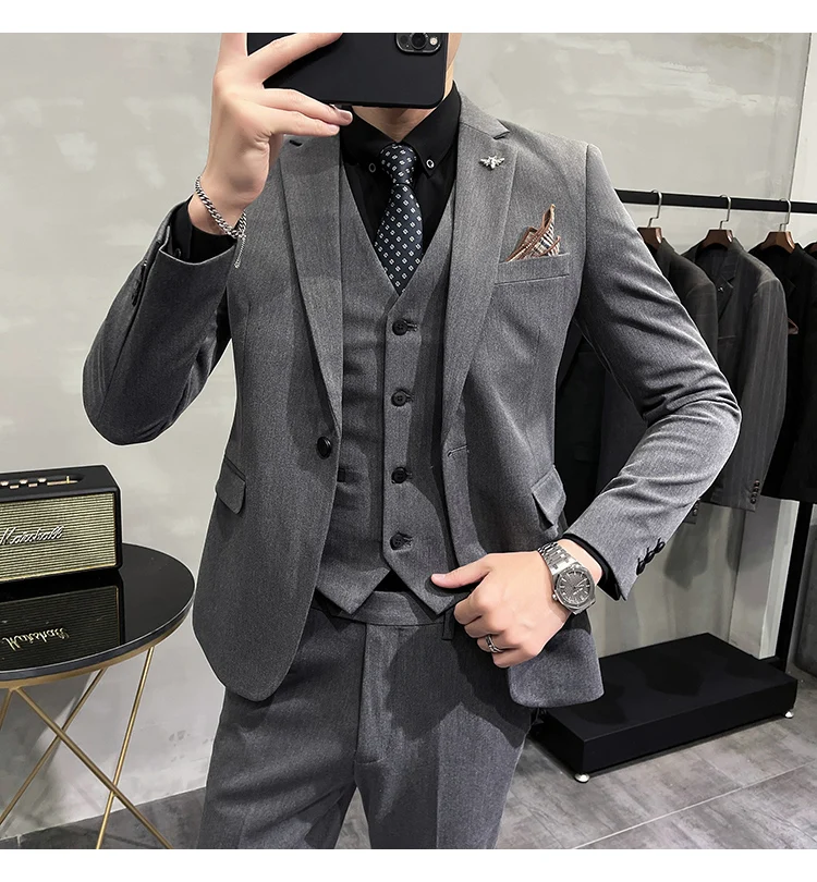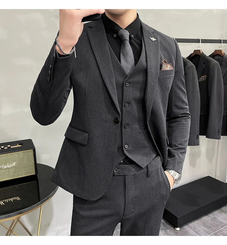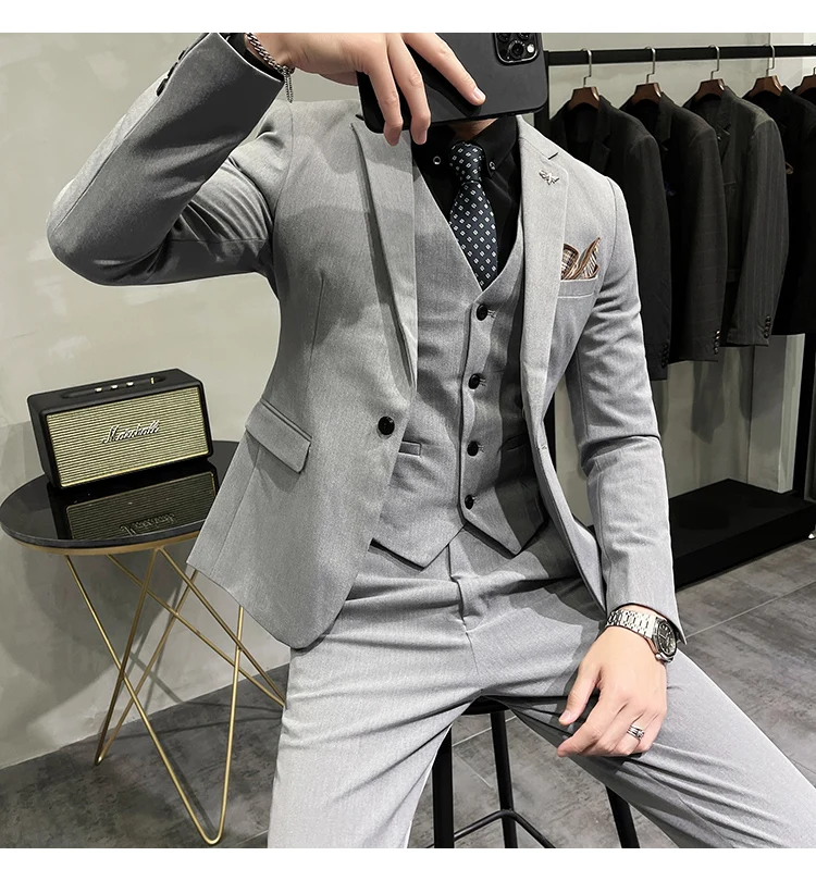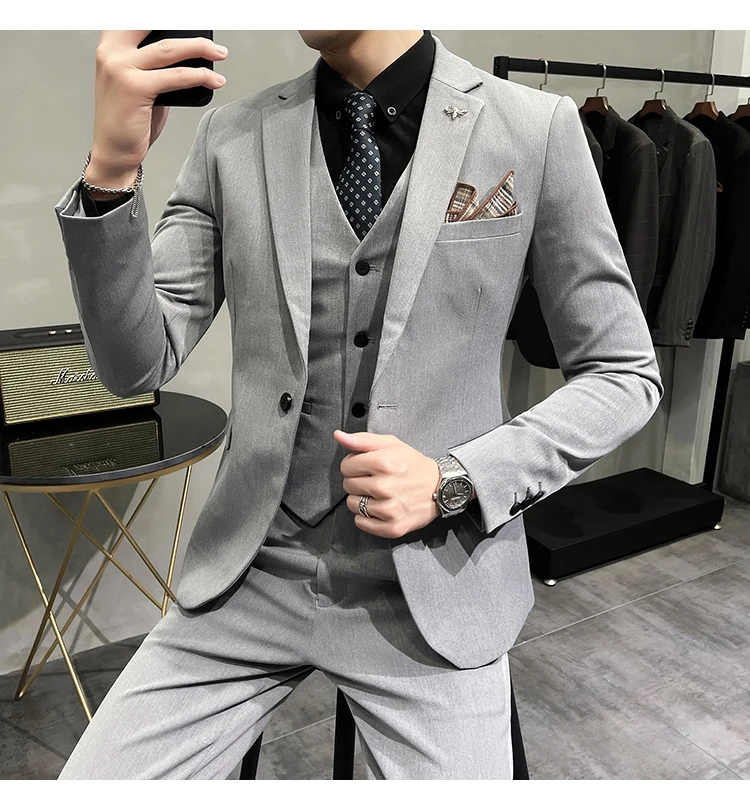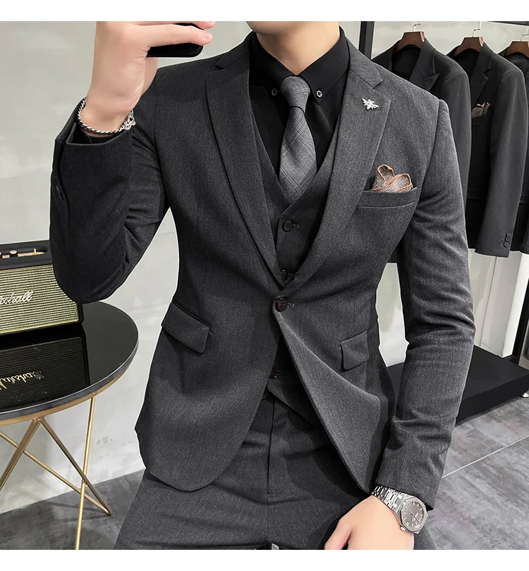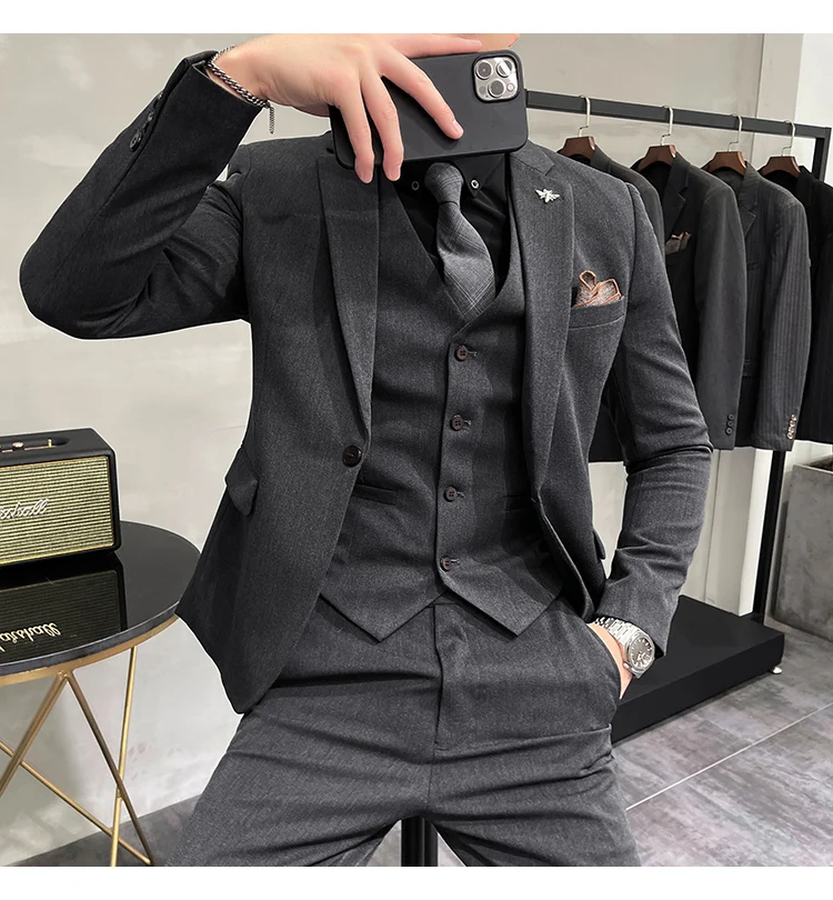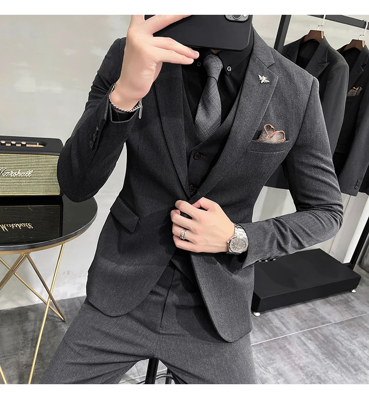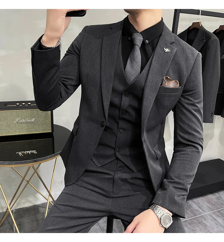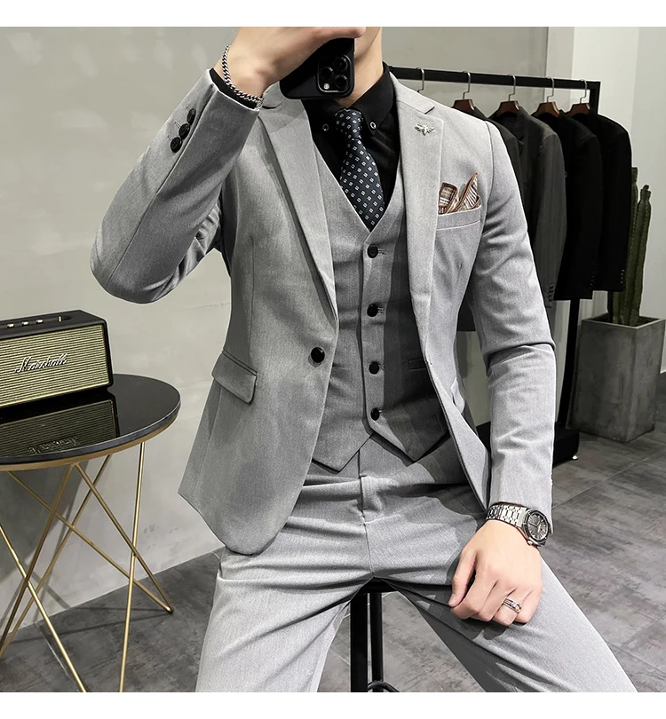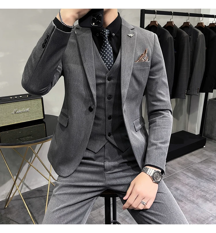 Blazers Vest Pants High Grade Fashion Pure Color Men’s Slim Formal Business Suit: Elevate Your Style