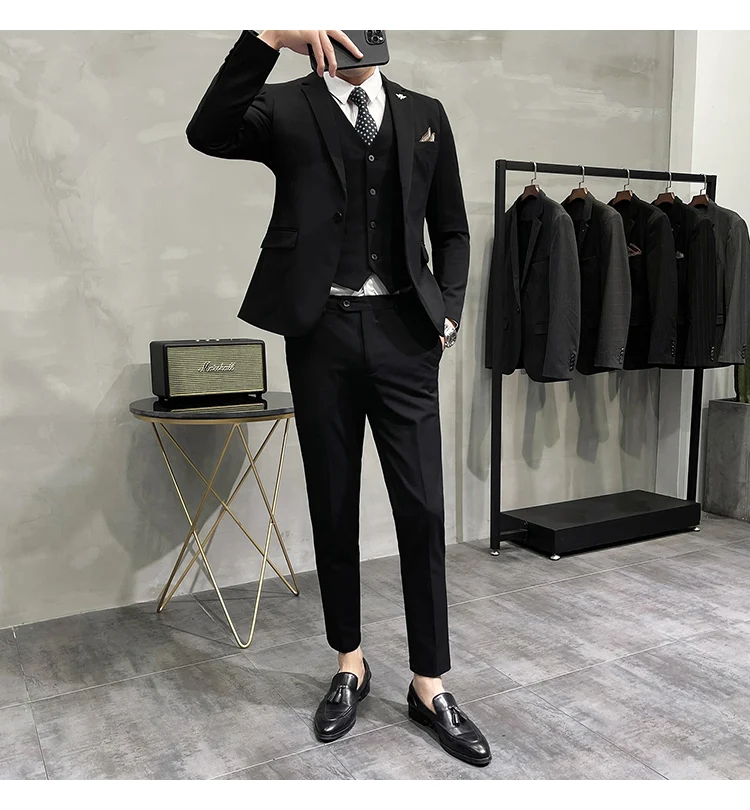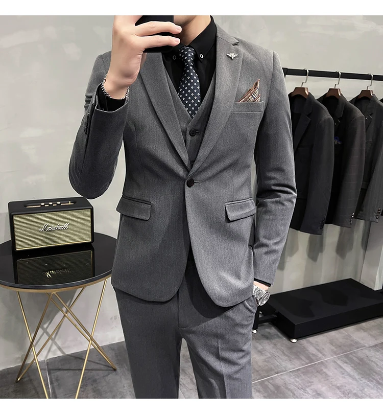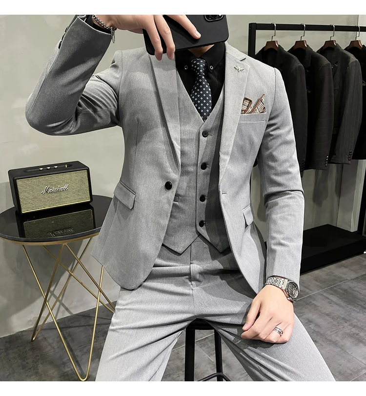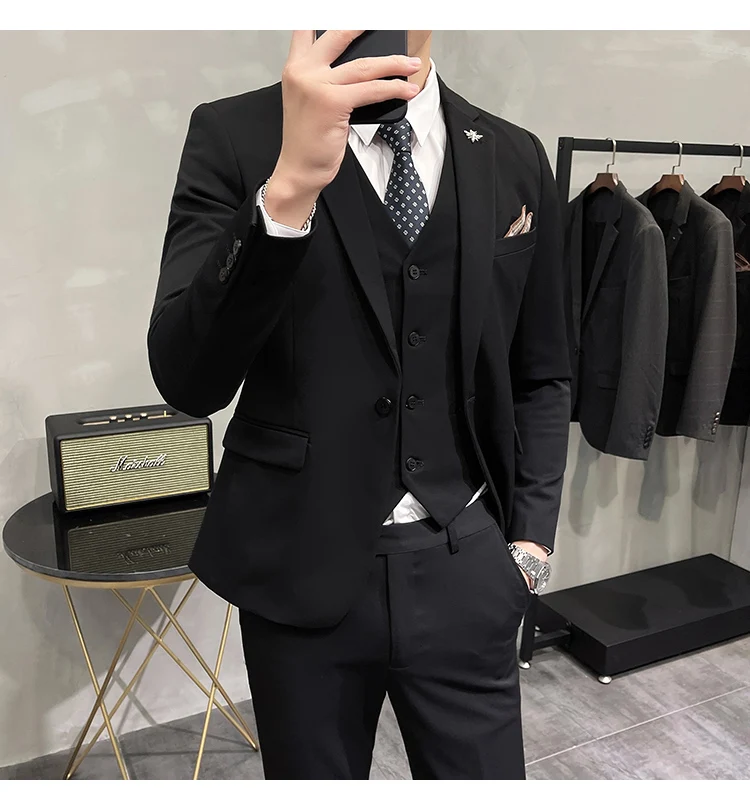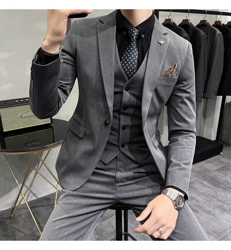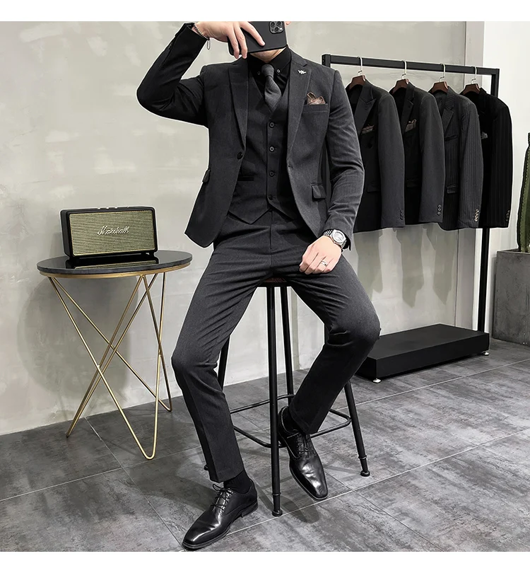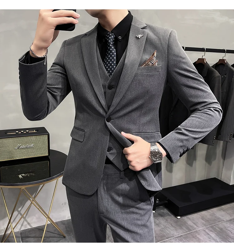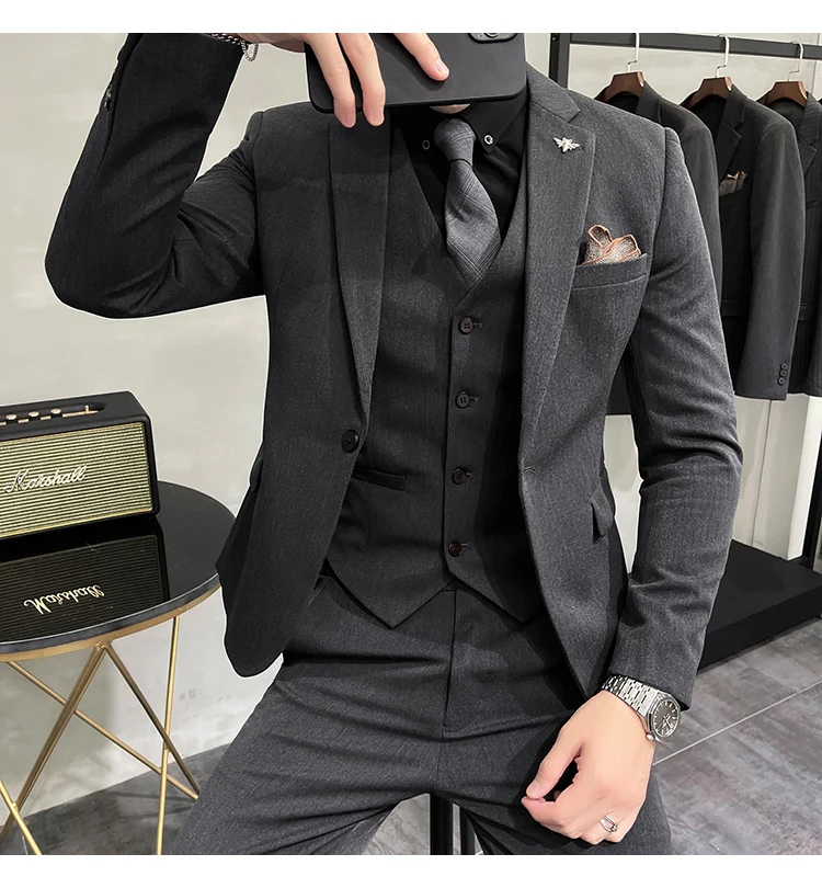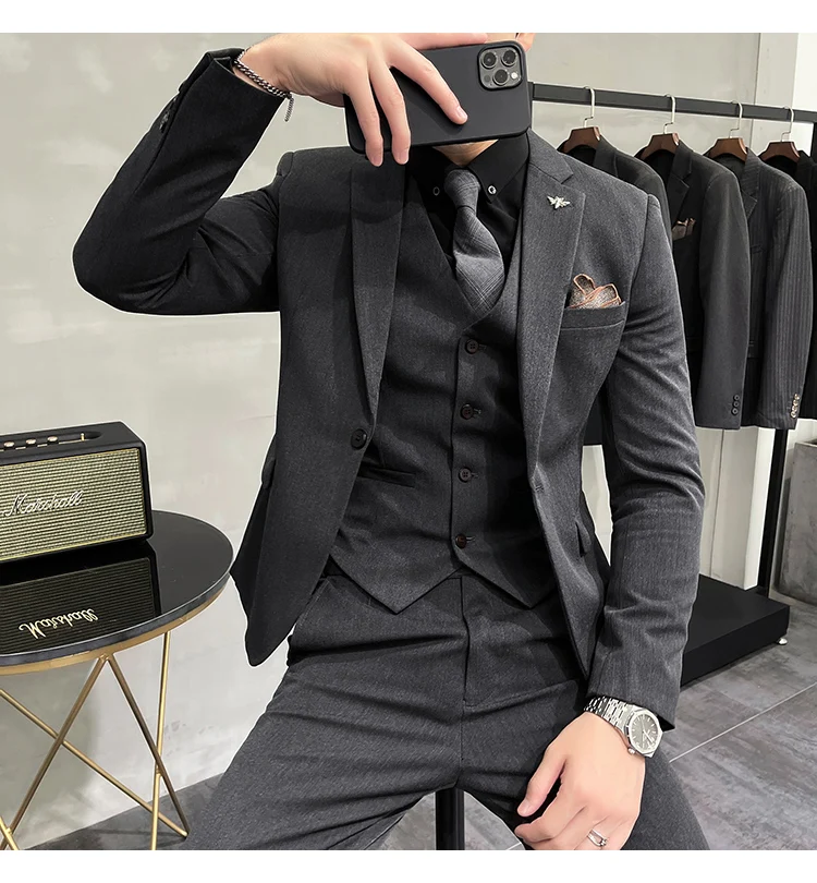 Blazers Vest Pants High Grade Fashion Pure Color Men’s Slim Formal Business Suit: Elevate Your Style