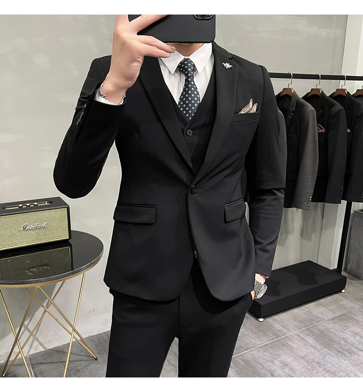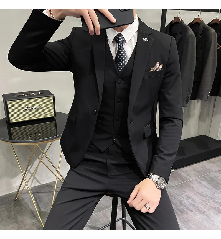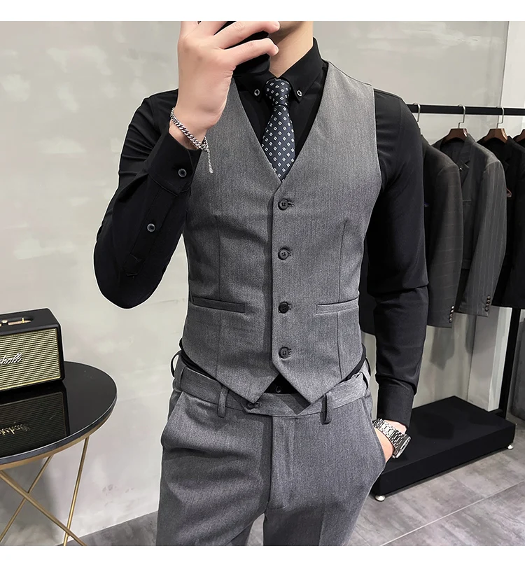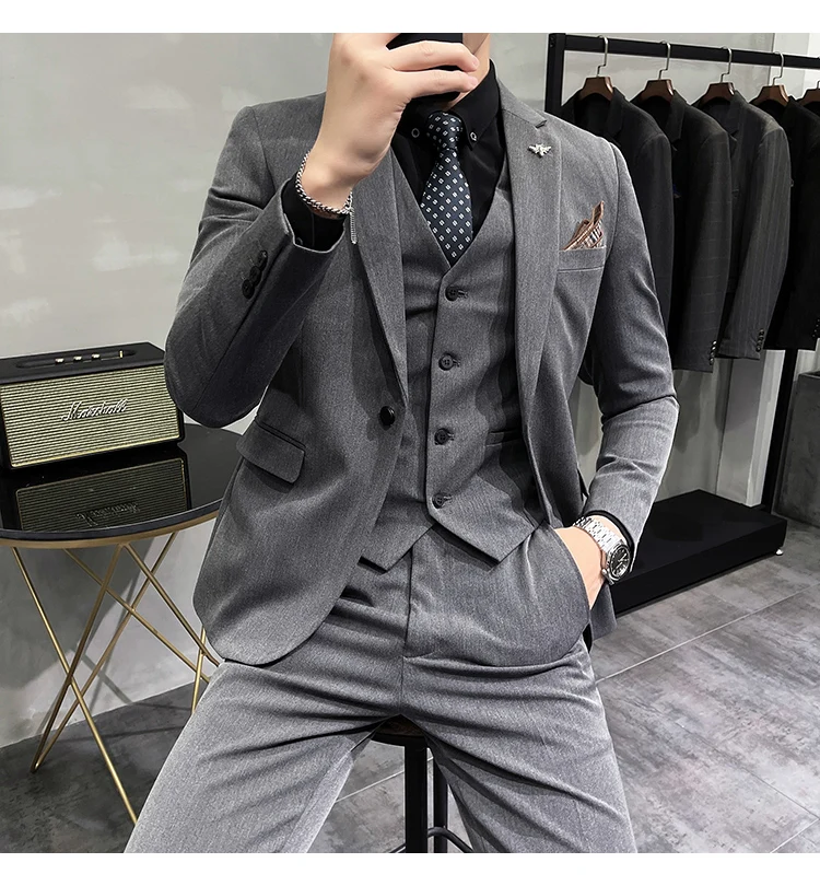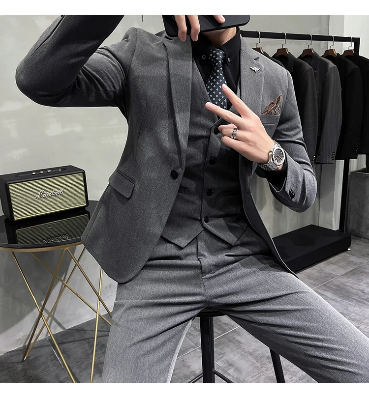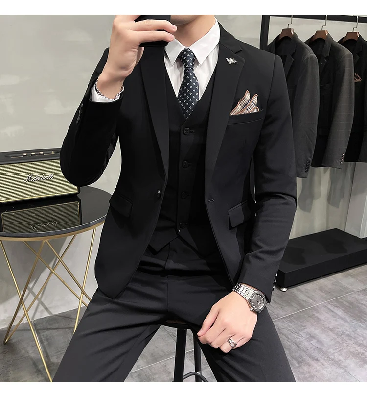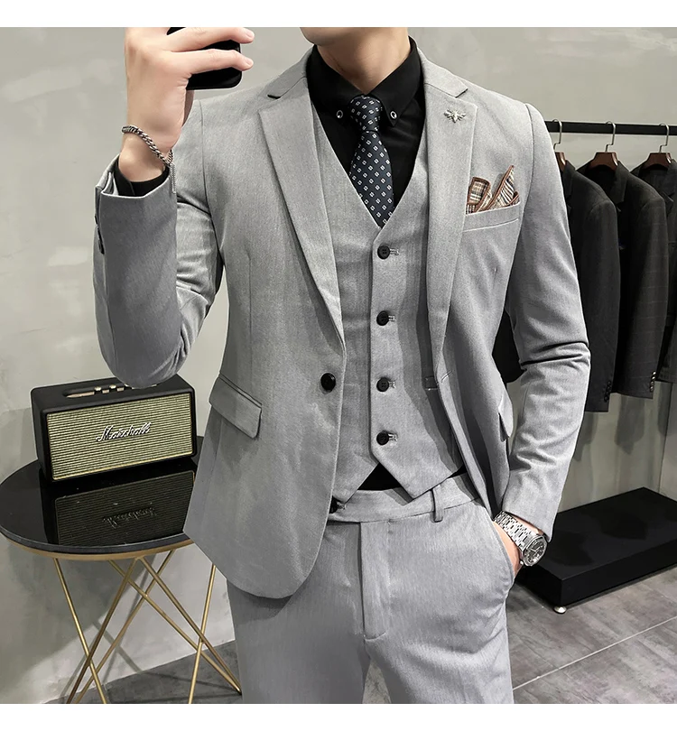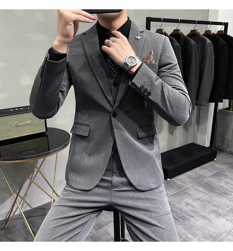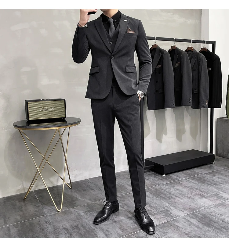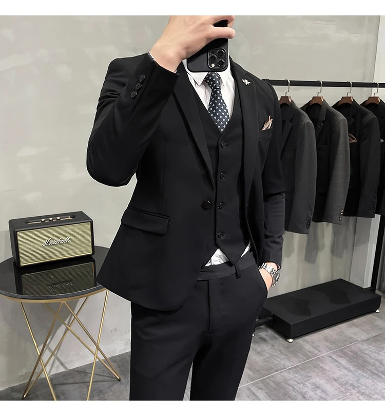 Blazers Vest Pants High Grade Fashion Pure Color Men’s Slim Formal Business Suit: Elevate Your Style
