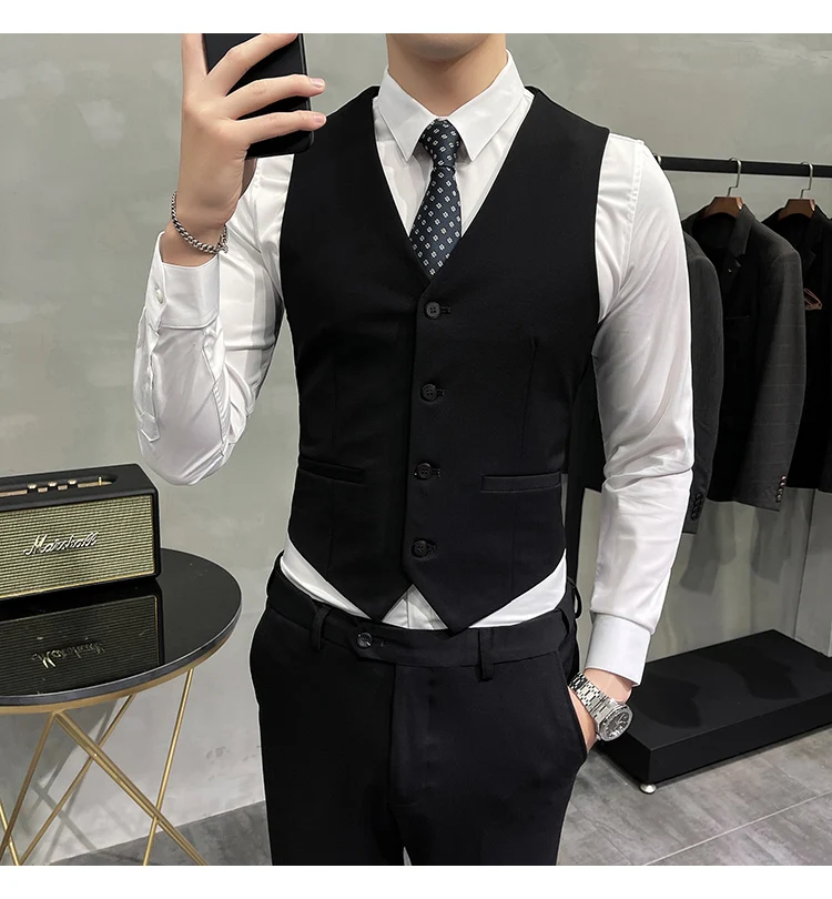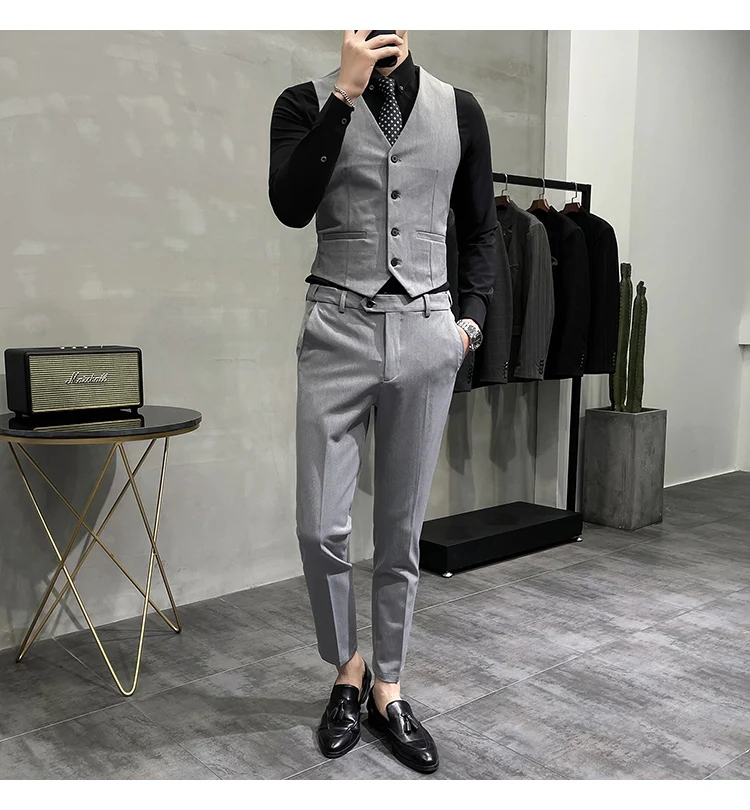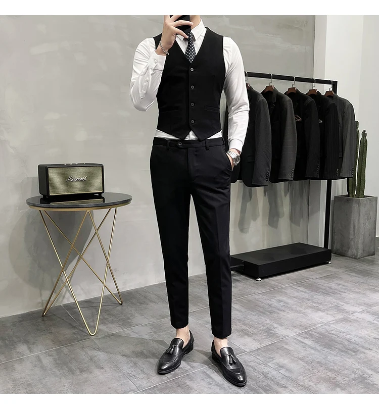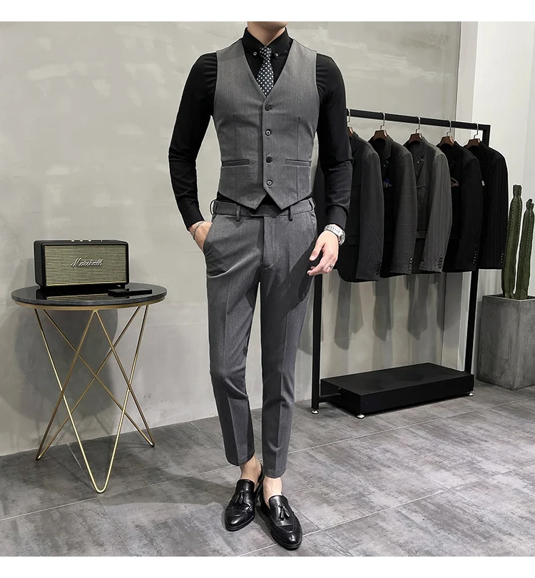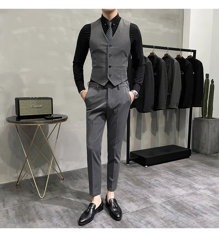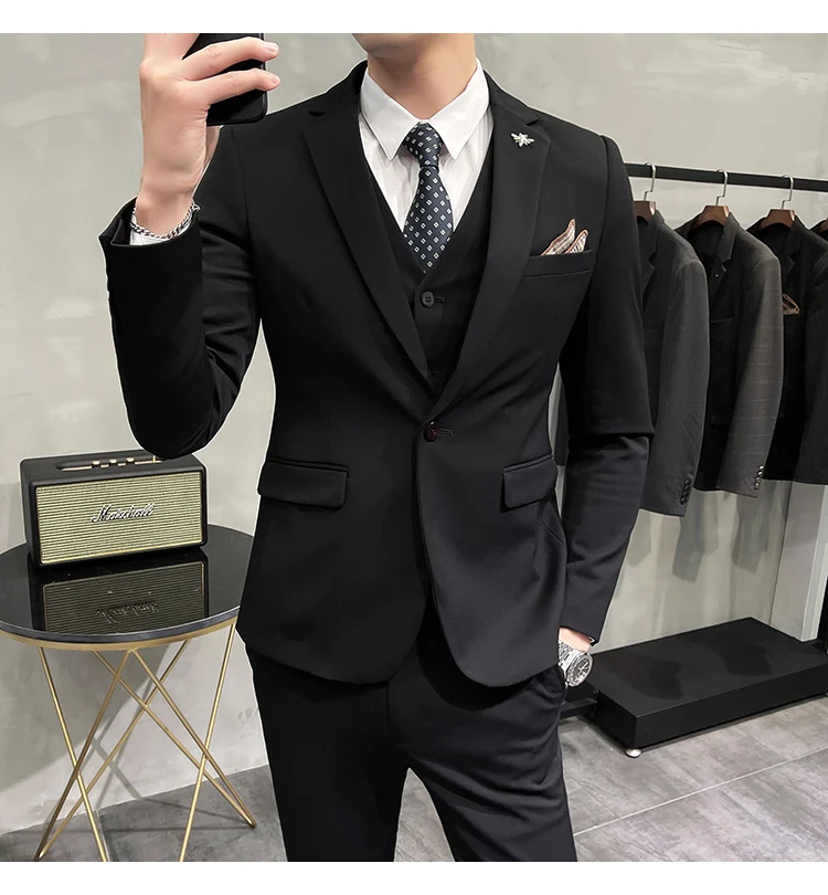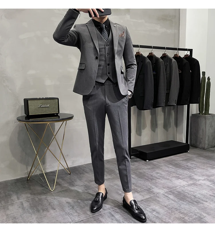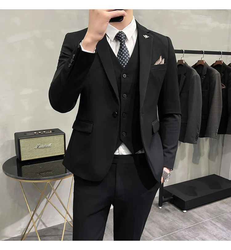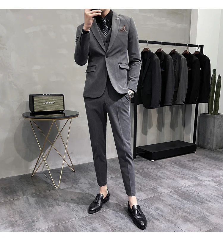 Blazers Vest Pants High Grade Fashion Pure Color Men’s Slim Formal Business Suit: Elevate Your Style