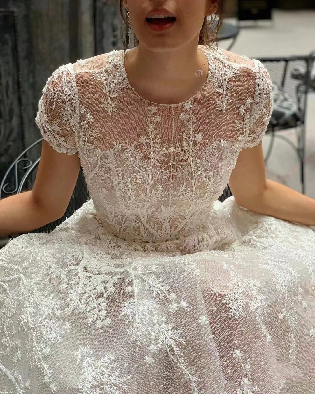Our O-neck short sleeve dresses are ideal for everything from contemporary ceremonies to laid-back boho wedding dress styles. Their delicate lace details and flattering fits make them equally suitable for mini wedding dress events or luxurious civil wedding dress gatherings.