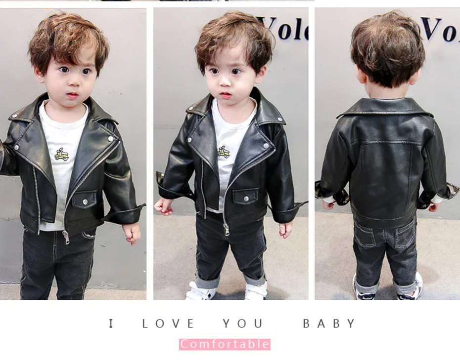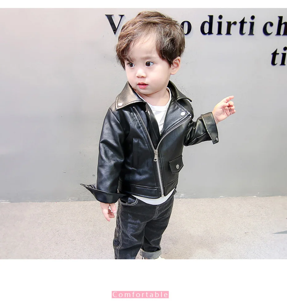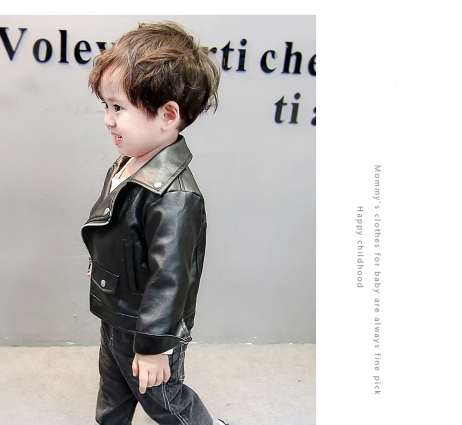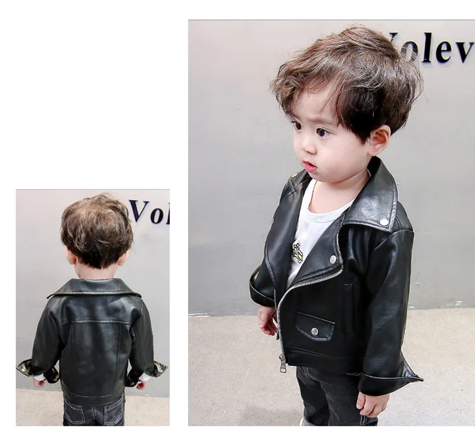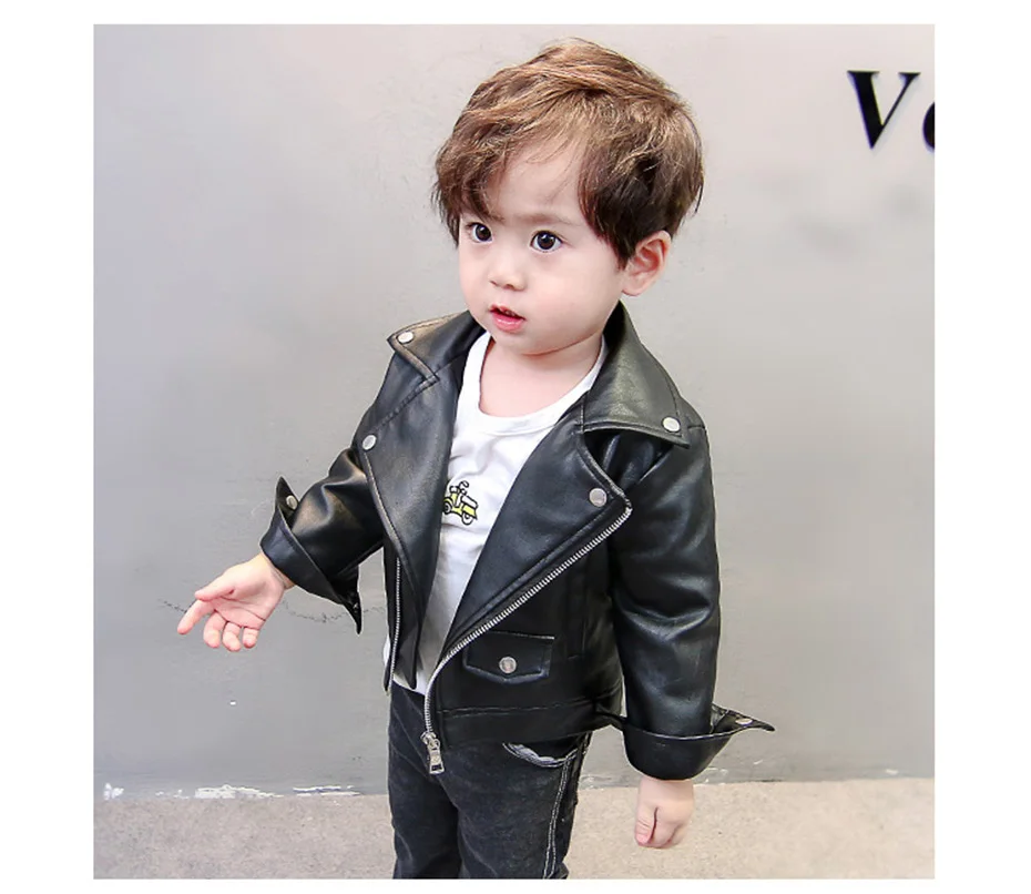 Boys Leather Jacket Solid Color Boy Coats Kids Casual Style Children Jackets