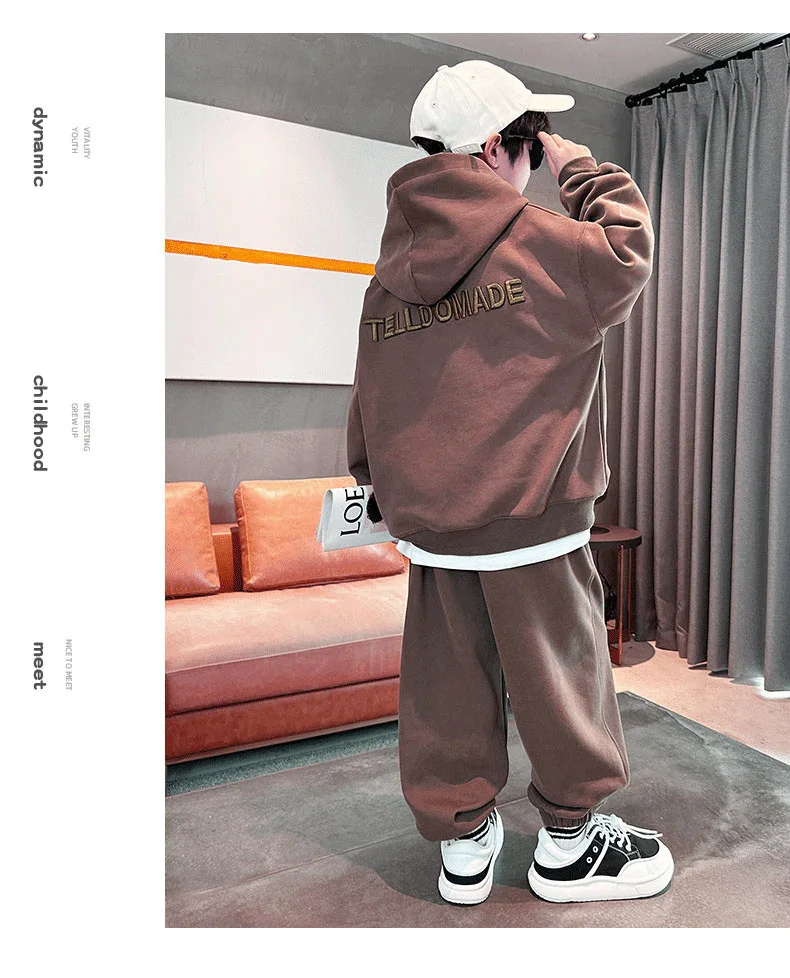 This boys autumn outfit features a stylish top and coordinating bottoms with classic lines and modern detailing, offering a smart yet comfortable fit. The relaxed cut allows freedom of movement for active children, making it ideal as everyday toddler boy clothes or a trendy children’s casual set. Thoughtful design elements, including adjustable waistbands and soft cuffs, enhance usability, ensuring your child can play, run, or sit comfortably. Parents will appreciate the seamless combination of traditional and modern fashion in this spring/autumn kids outfit, perfect for school, family gatherings, or photo opportunities.