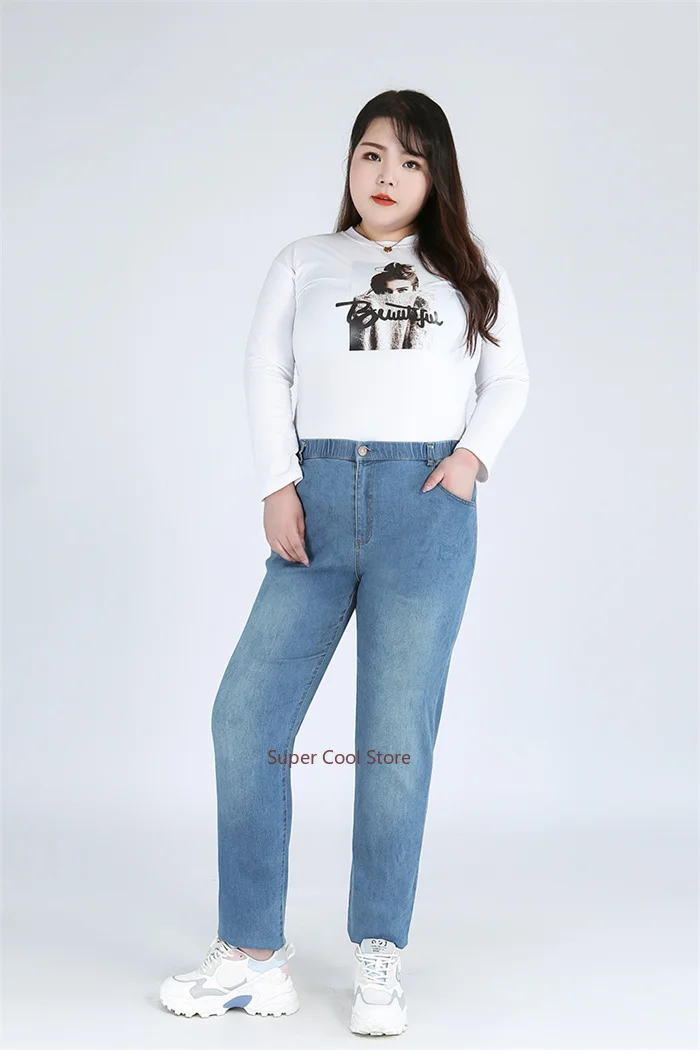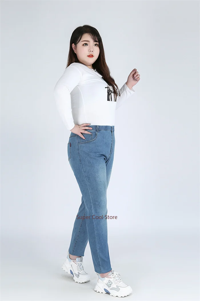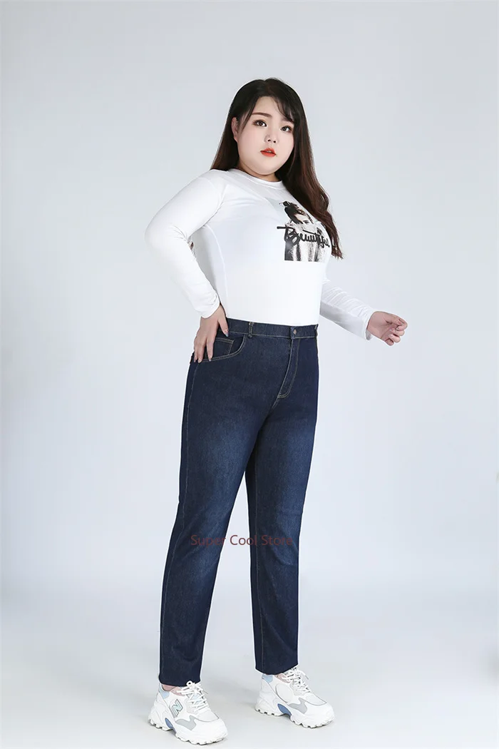 Introducing our Classic Blue Women Pant Jeans, available in plus sizes up to 9XL and 140KG. These jeans are designed to offer a perfect blend of style, comfort, and functionality for every body type. With a high waist and elastic waistband, they provide a secure fit while allowing for easy movement throughout the day.