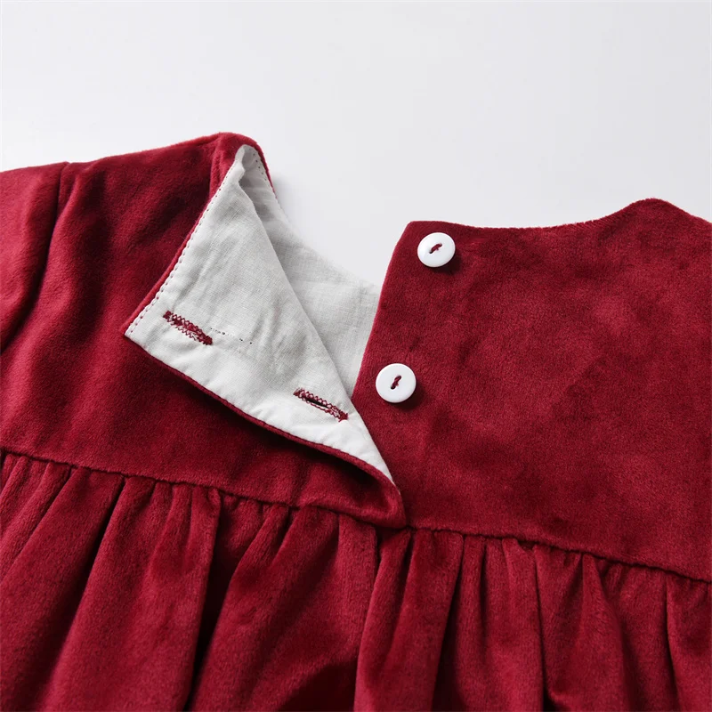 Crafted from plush velvet, this dress offers a soft, comfortable fit while exuding a festive charm that’s ideal for the holiday season. The long sleeves provide extra warmth, making it suitable for cooler winter days. The rich velvet fabric adds a touch of sophistication, ensuring your child looks and feels her best.