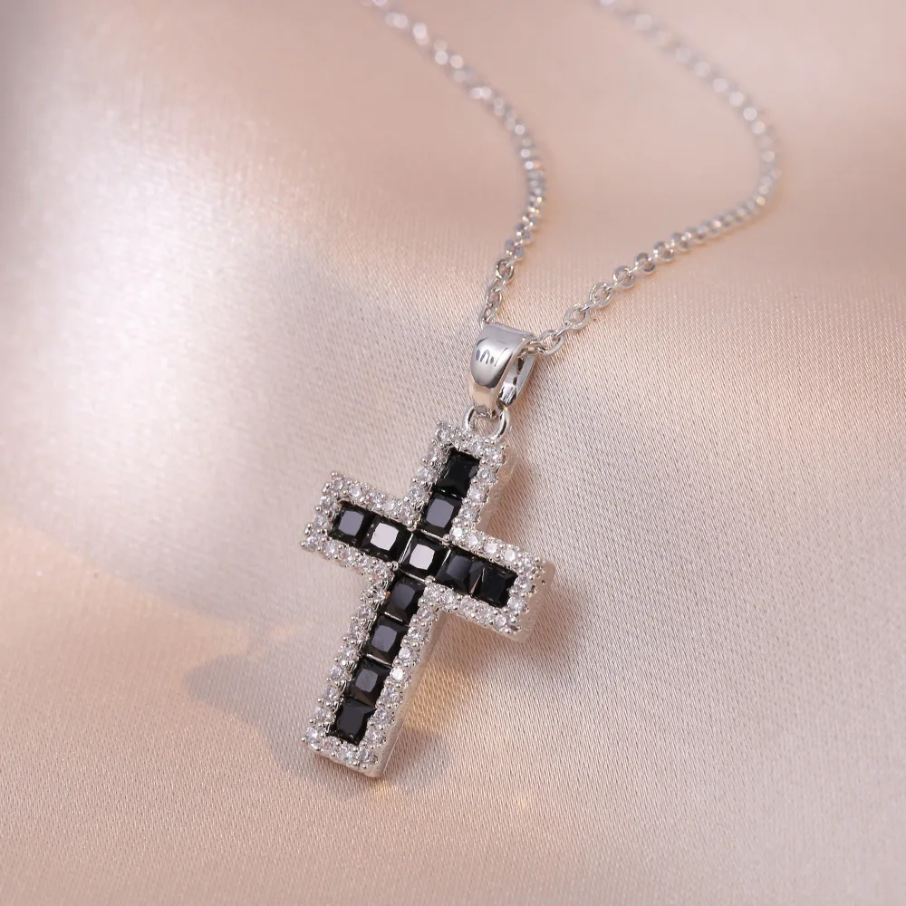 Colorful Zircon Cross Pendant Necklaces for Women and Girls: A Trendy Statement Piece
