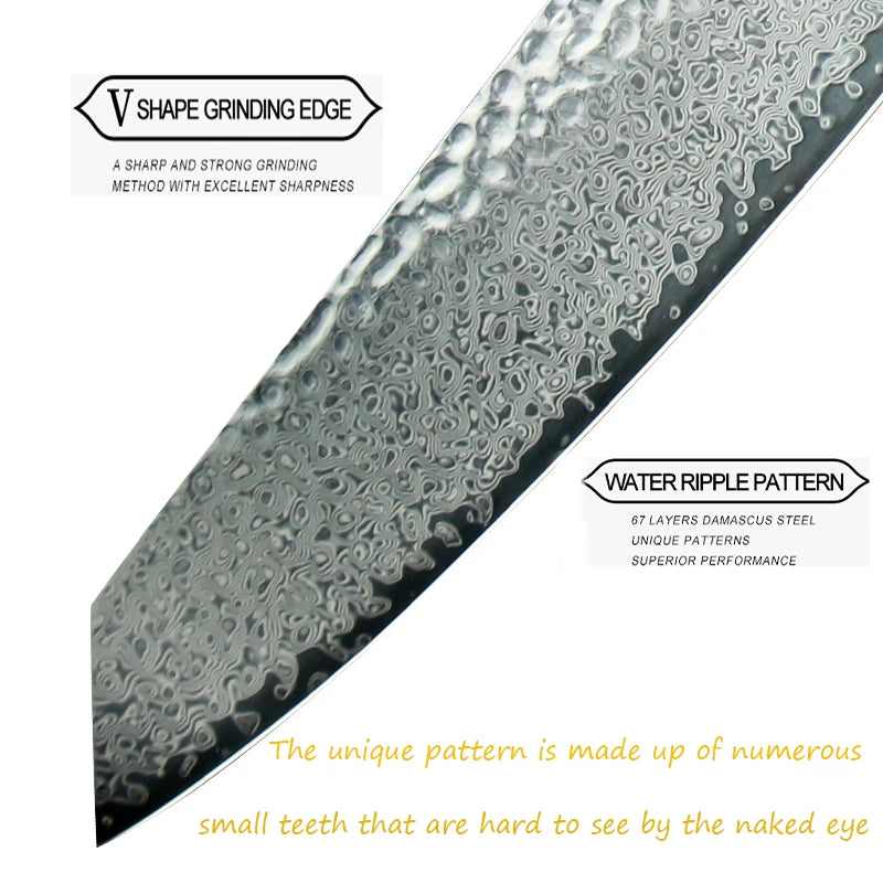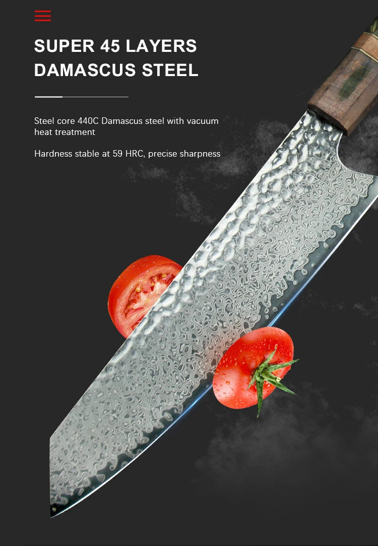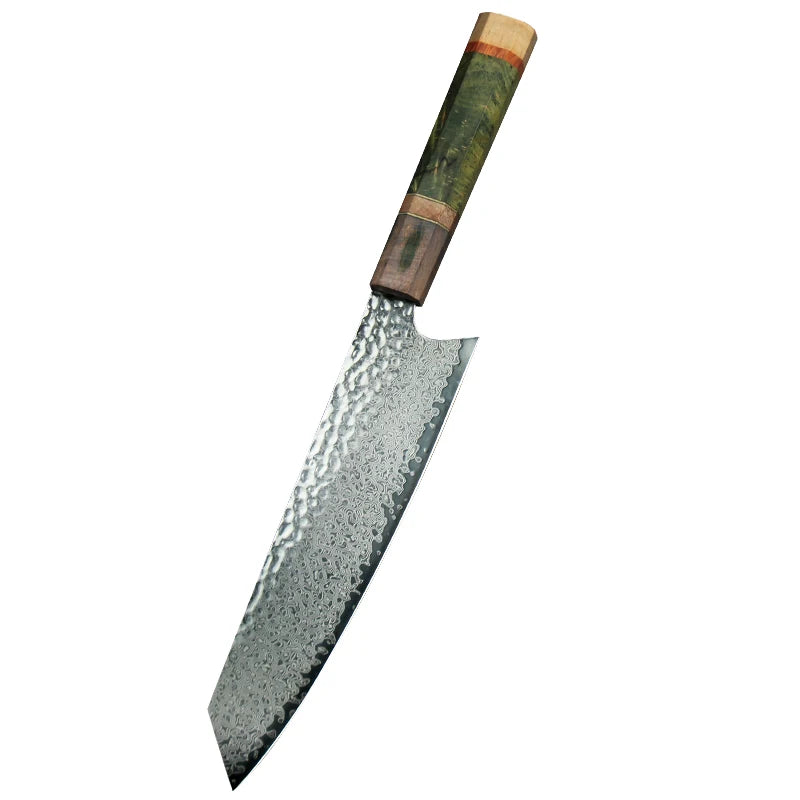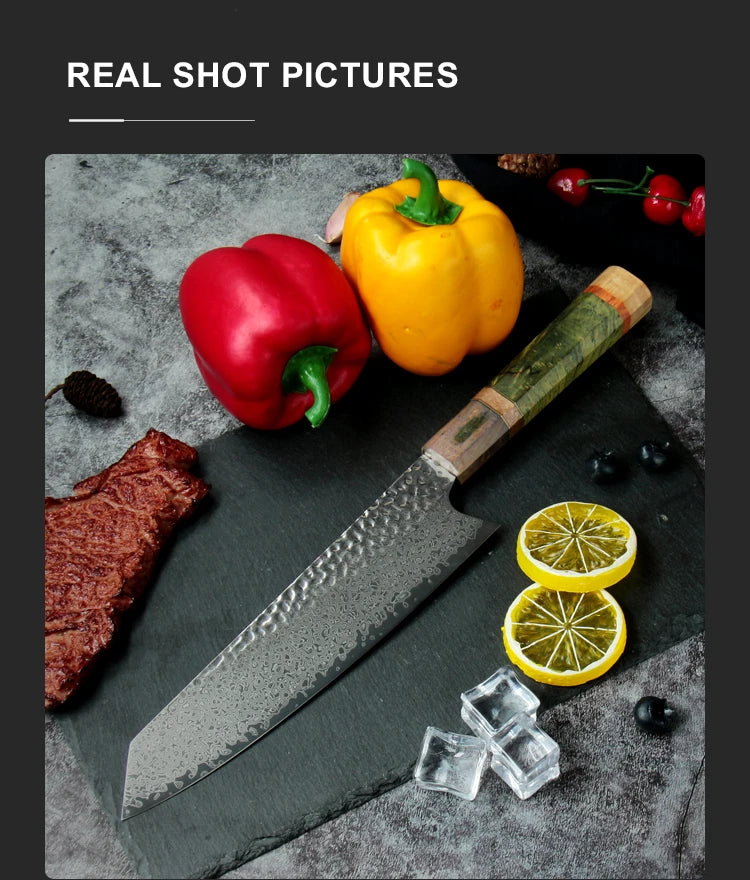 Elevate your culinary experience with the Damascus Chef Knife from our store. Crafted with precision and designed for both professionals and home cooks, this 8-inch VG10 Japanese knife is not just a tool; it's an essential companion in your kitchen. Perfect for slicing, dicing, and chopping, it’s a standout addition to any kitchen knife set.