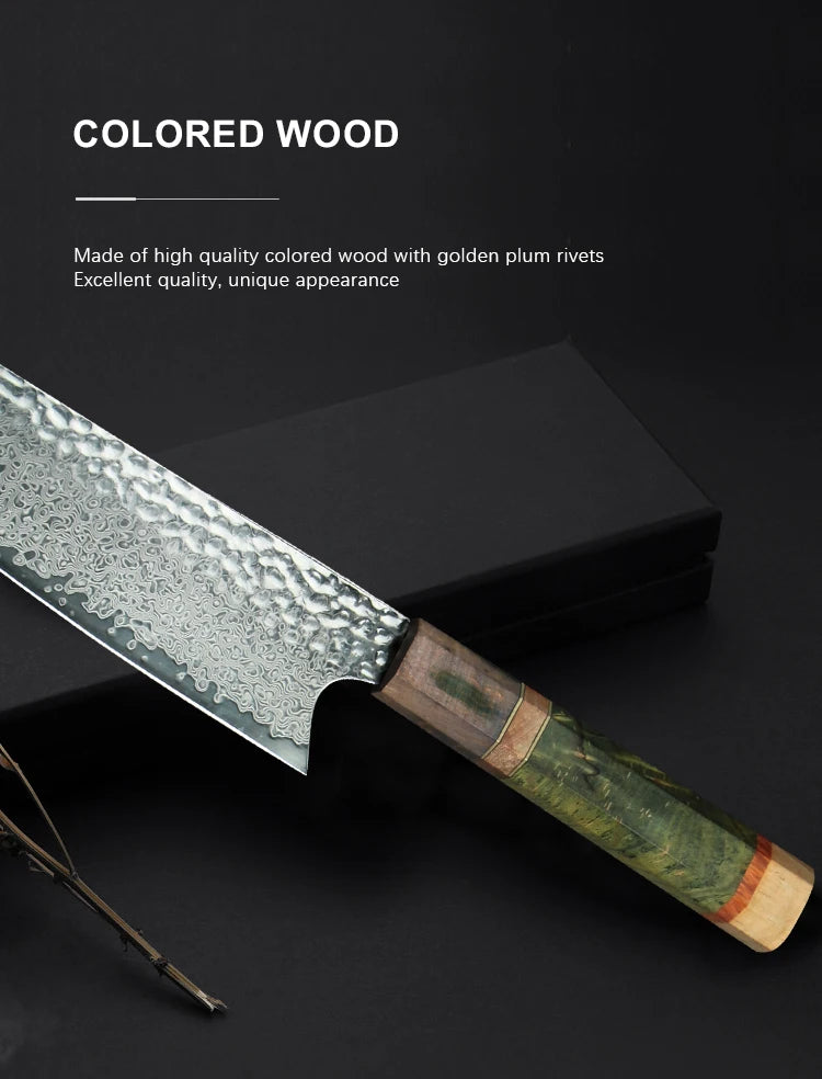 Damascus Chef Knife (8 Inch) - VG10 Japanese Knife with Stabilized Colored Wood Handle