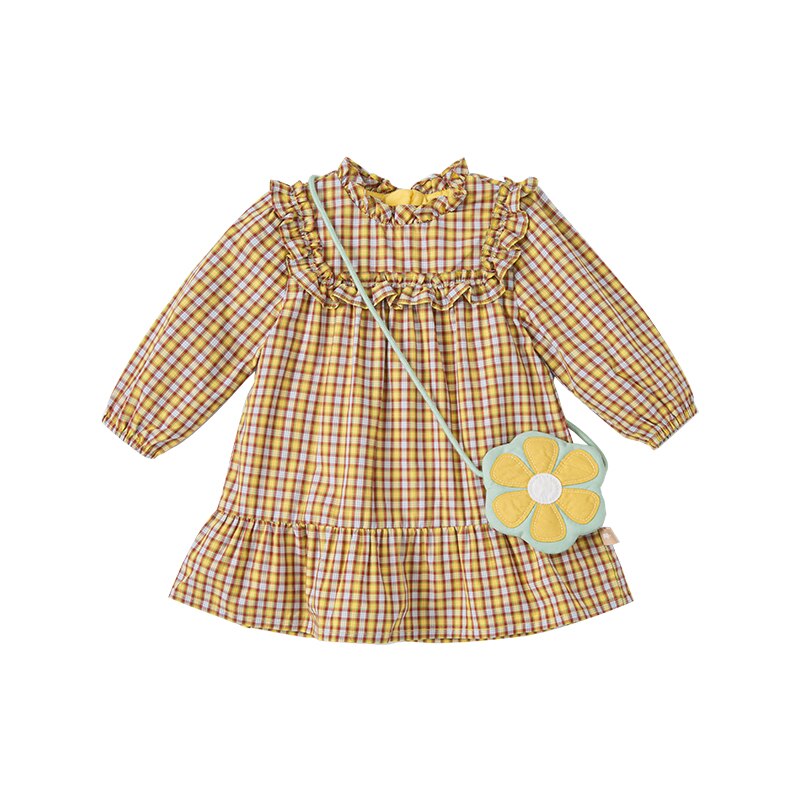 dave bella spring baby girls fashion plaid dress with a small bag party dress