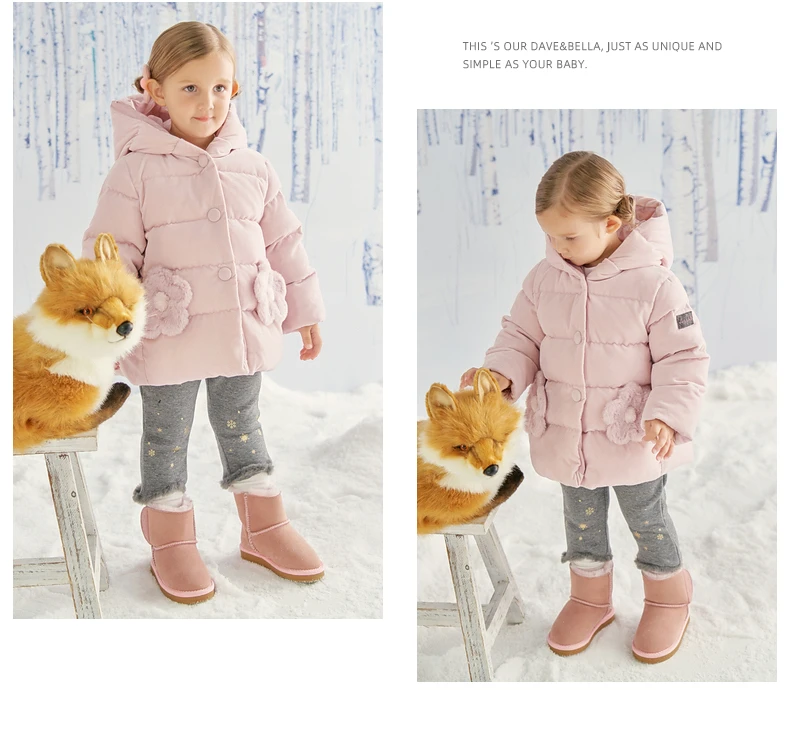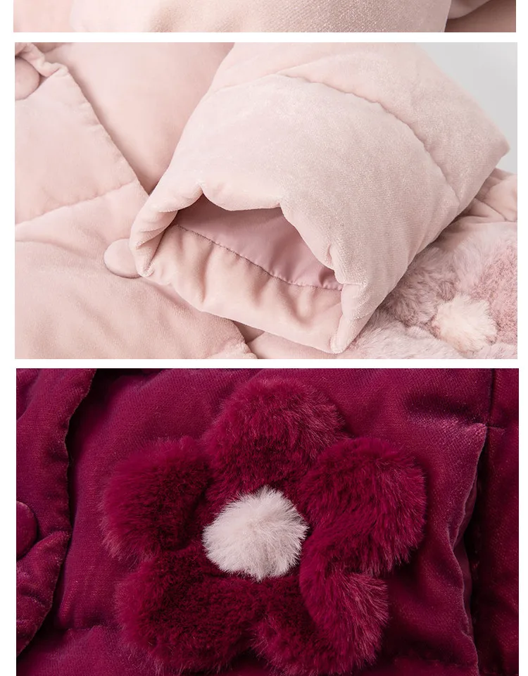 winter baby girls fashion floral hooded down coat children white