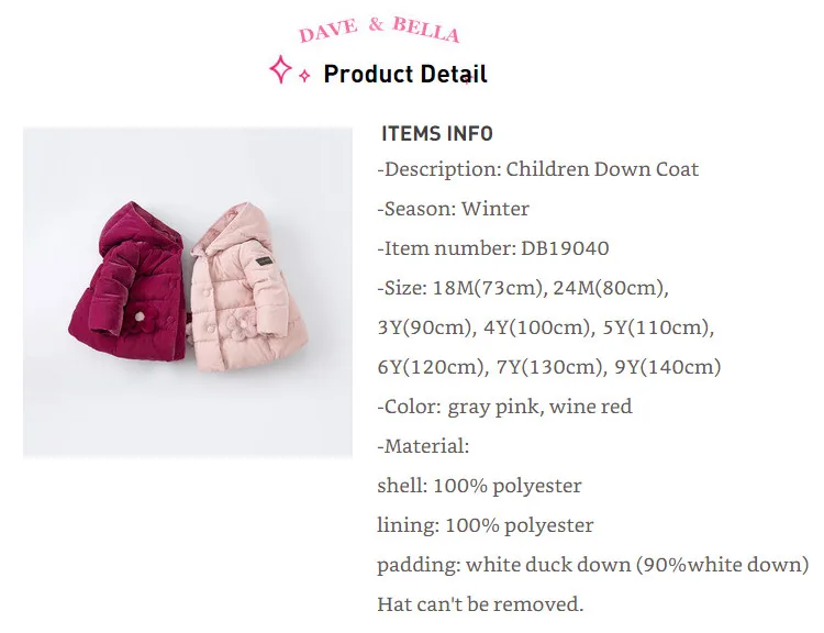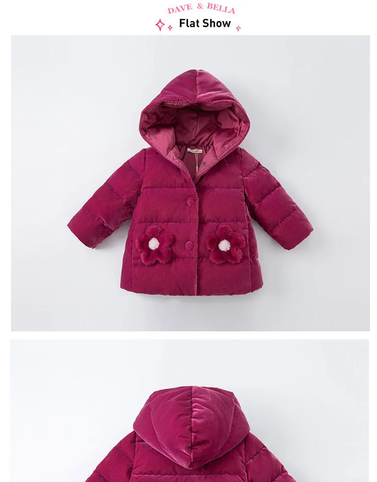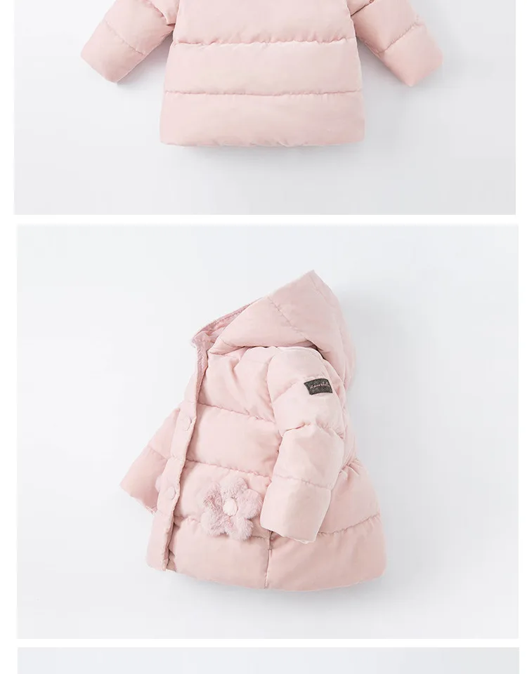 Product Description: Winter Baby Girls Fashion Floral Hooded Down Coat Children White