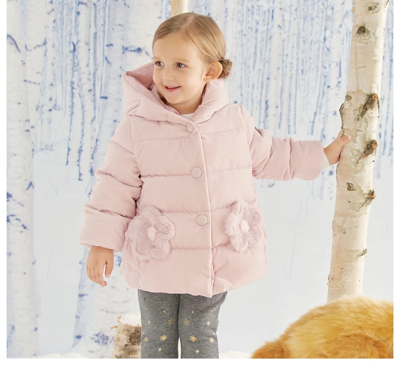 Invest in a coat that combines fashion, functionality, and comfort. Choose the Winter Baby Girls Fashion Floral Hooded Down Coat Children White and let your child step out in style.