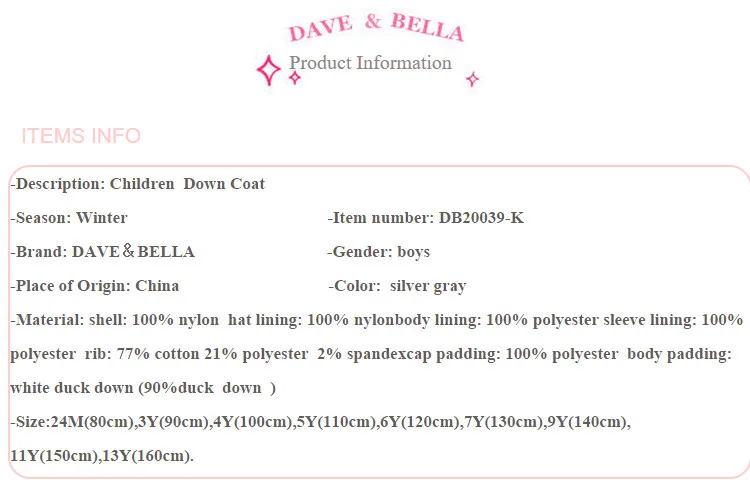 Upgrade your child's winter wardrobe with the Dave Bella Winter Baby Boys' Carton Hooded Down Jacket. Whether you're looking for a boys' coat, a durable kids' jacket, or a cozy toddler coat, this stylish and practical jacket meets all your needs. Order now and ensure your little one is ready for winter's chill with the best in kids' winter coats.