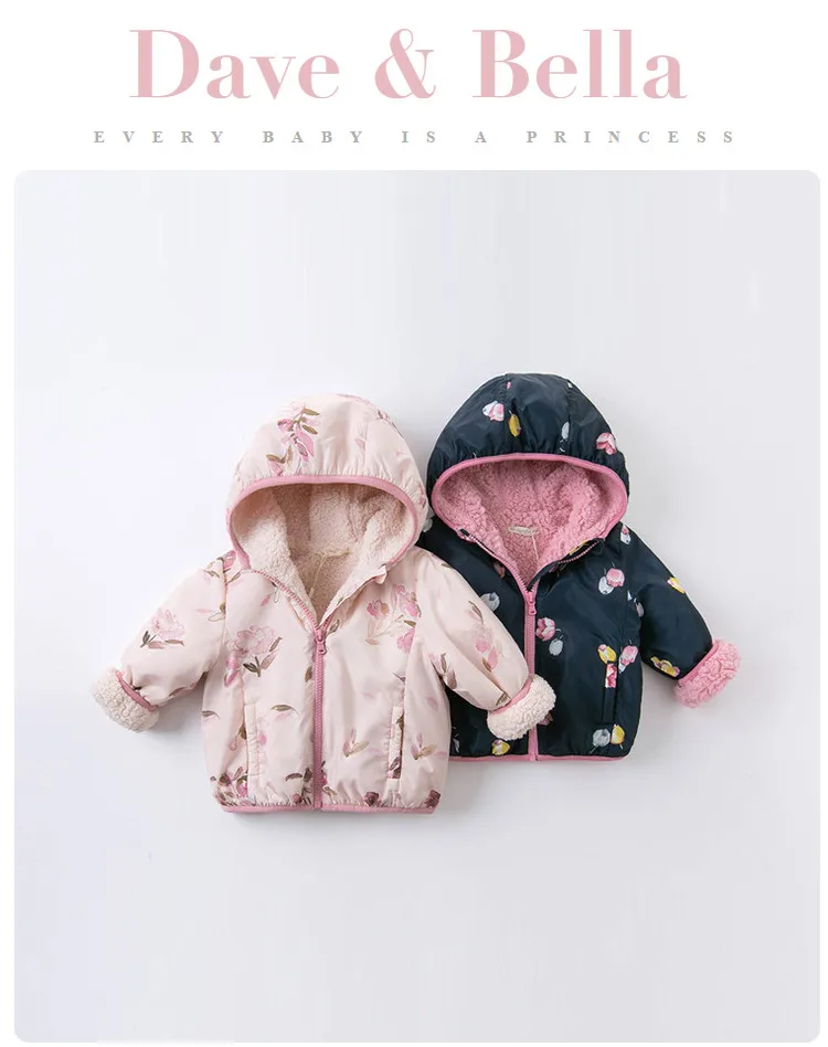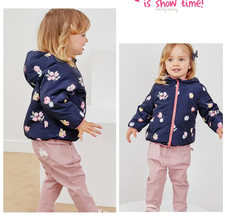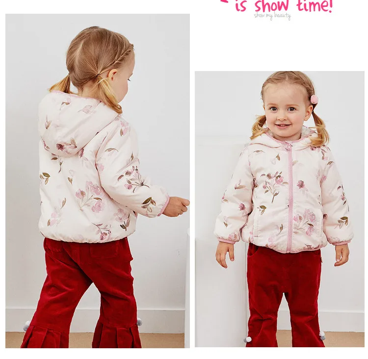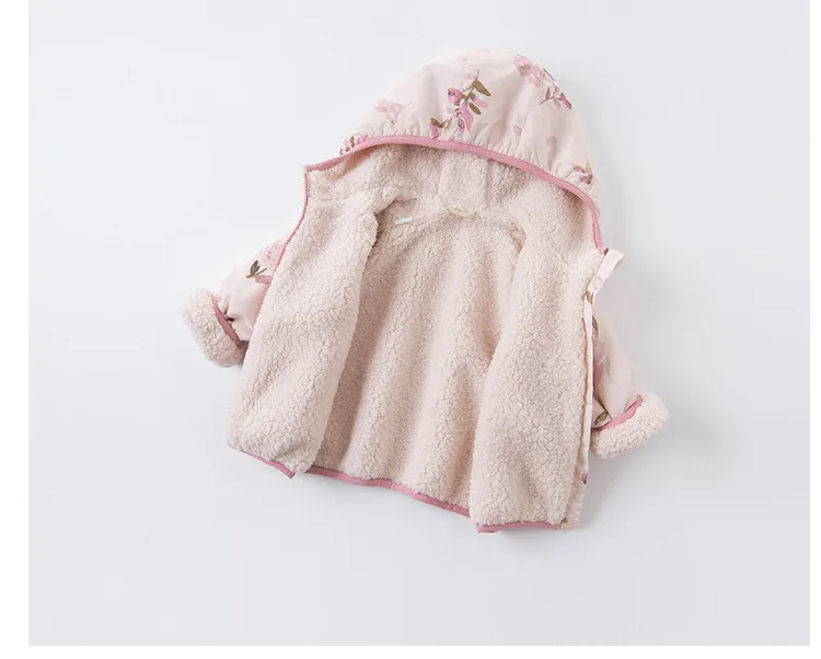 winter baby girls fashion floral zipper pockets hooded coat