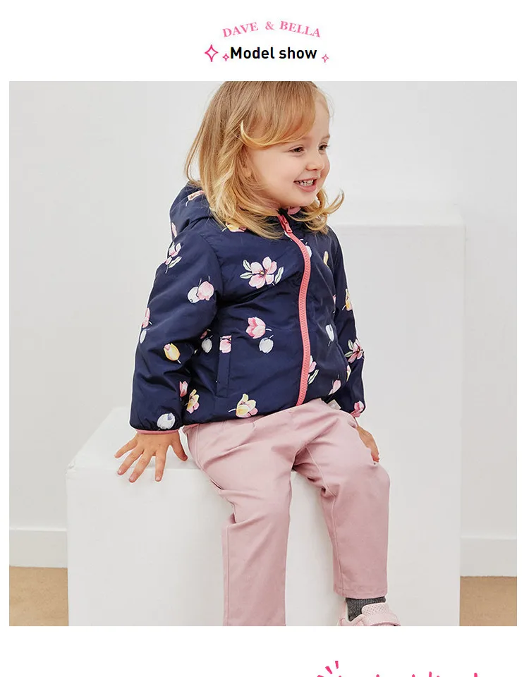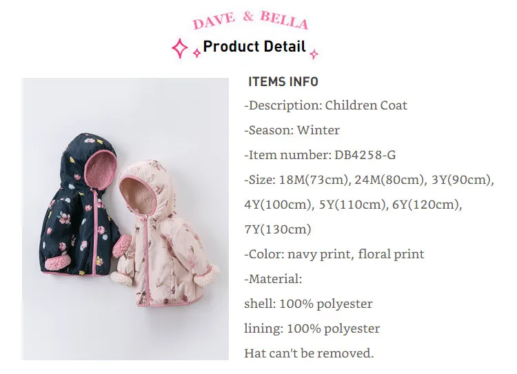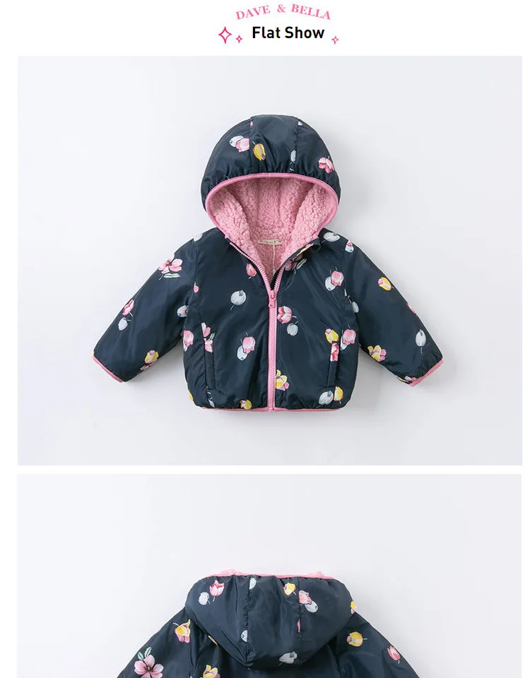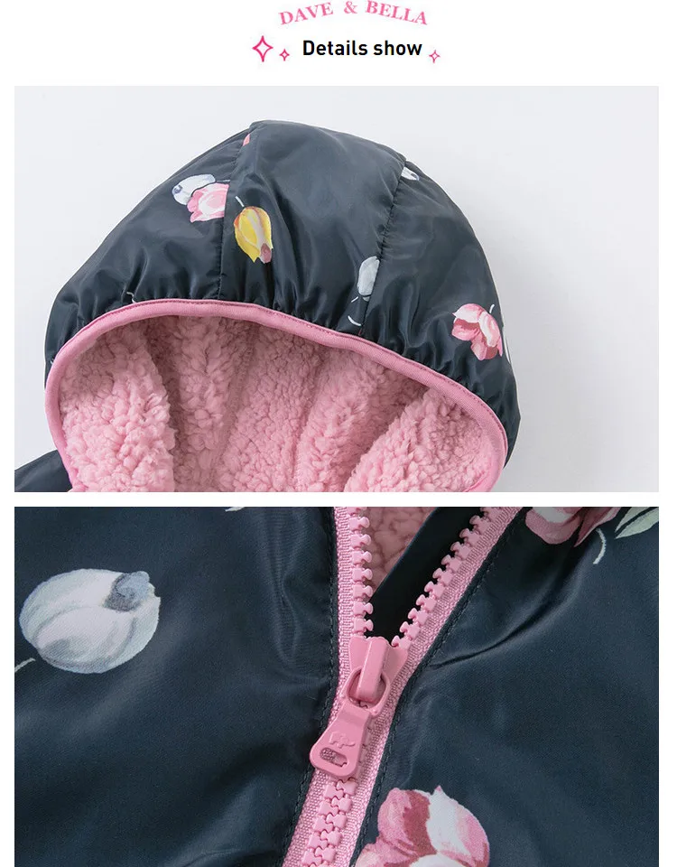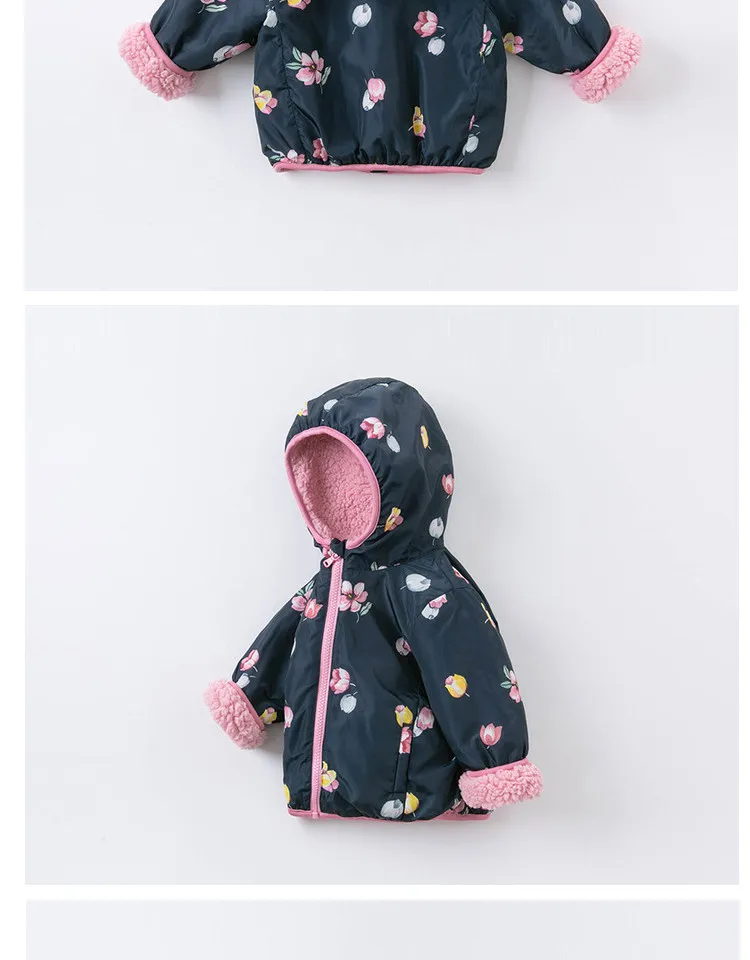Product Description: Winter Baby Girls Fashion Floral Zipper Pockets Hooded Coat