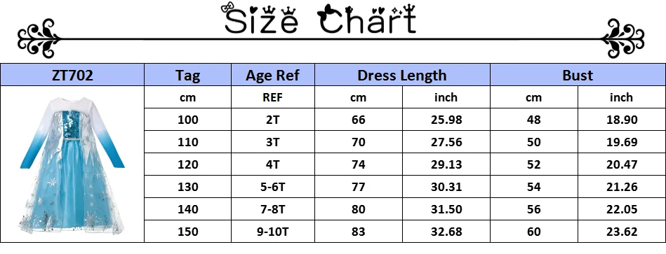 Name: Disney Frozen Elsa Princess Dress for Girls Halloween Fancy Children Cosplay Frock Clothes Snow Queen Elza Costume Birthday Gift