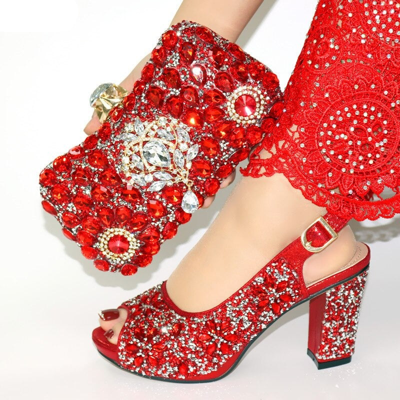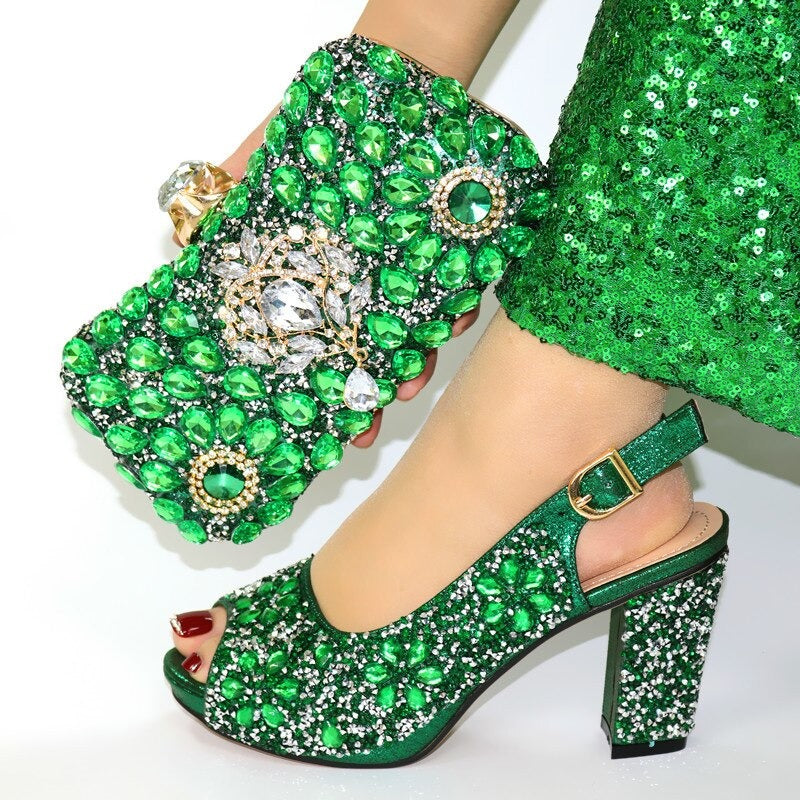 Our matching shoes and purse set designer collection showcases the artistry and craftsmanship of Italian designers. The shoes and bag are crafted from premium materials, ensuring both durability and a luxurious feel. The delicate decorations add a touch of intricate detail, making this shoe and bag set a true work of art. Looking for shoes with matching bag? This set is a perfect choice.
