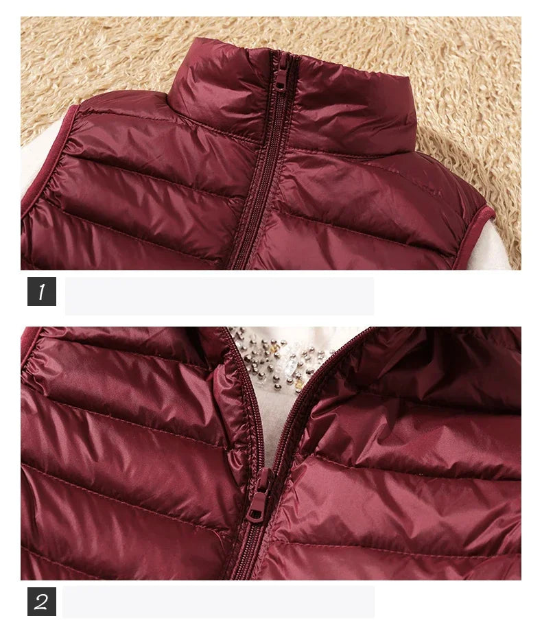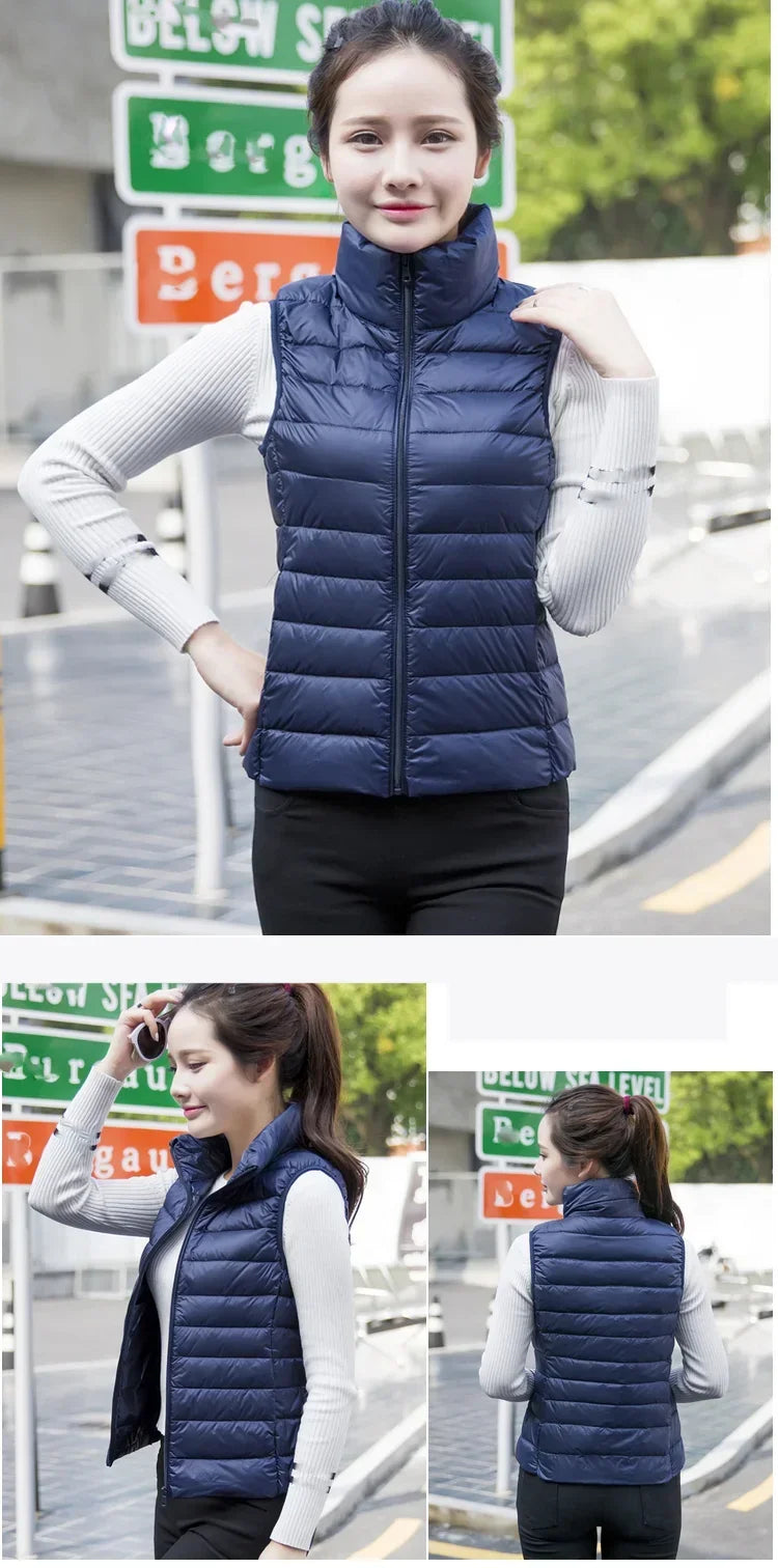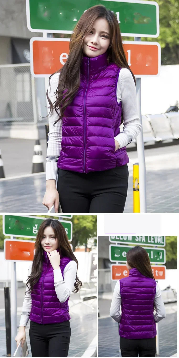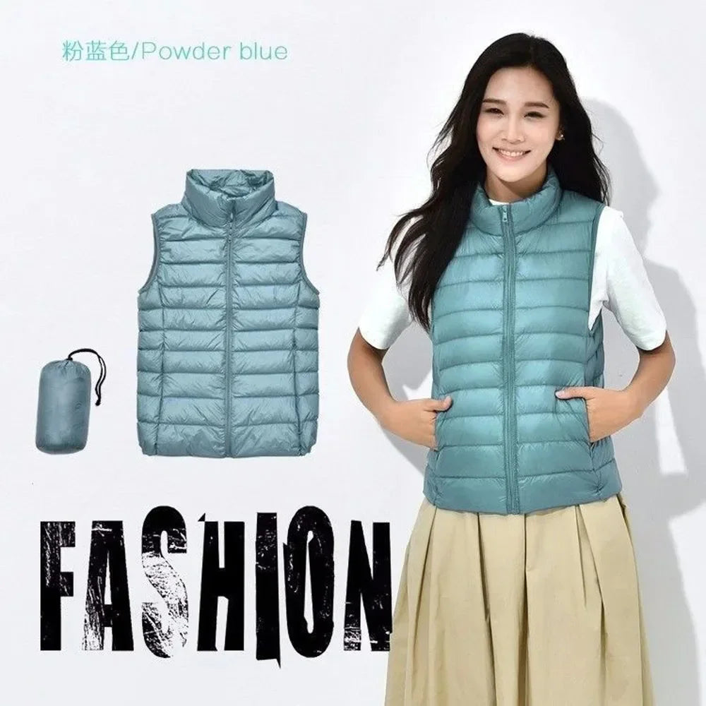 Introducing the Down Jacket Women Sleeveless Ultra Light Down Vest, a versatile and stylish addition to your wardrobe, perfect for staying warm without the bulk. This slim jacket is expertly designed to keep you cozy in chilly weather while maintaining a sleek, flattering silhouette. Whether you're looking for a lightweight layering piece or a travel-friendly option, this ladies down jacket ticks all the boxes.
