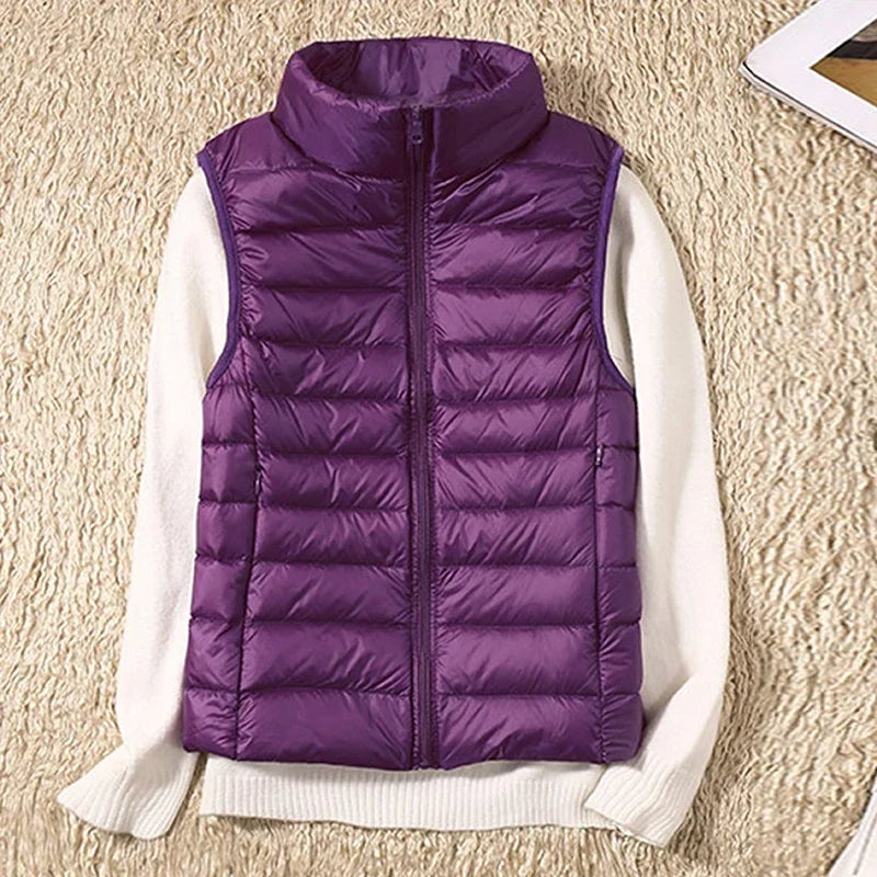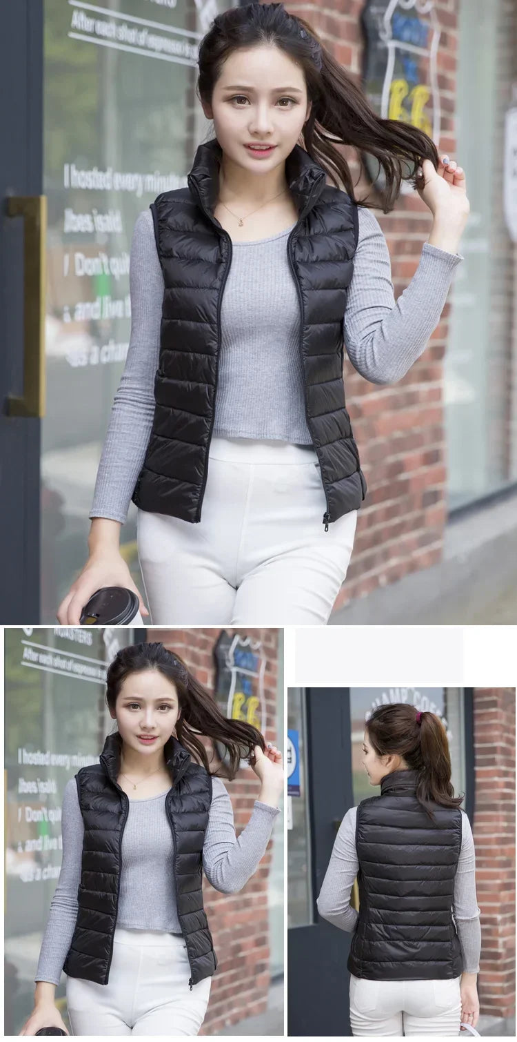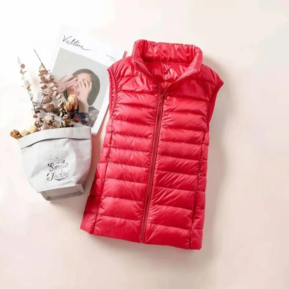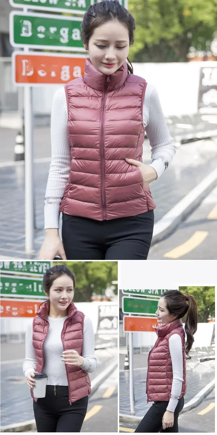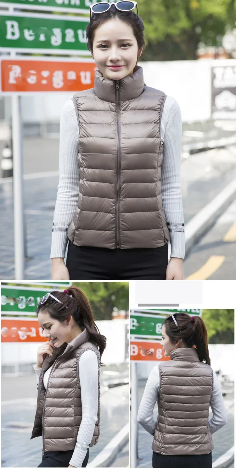 Introducing the Down Jacket Women Sleeveless Ultra Light Down Vest, a versatile and stylish addition to your wardrobe, perfect for staying warm without the bulk. This slim jacket is expertly designed to keep you cozy in chilly weather while maintaining a sleek, flattering silhouette. Whether you're looking for a lightweight layering piece or a travel-friendly option, this ladies down jacket ticks all the boxes.