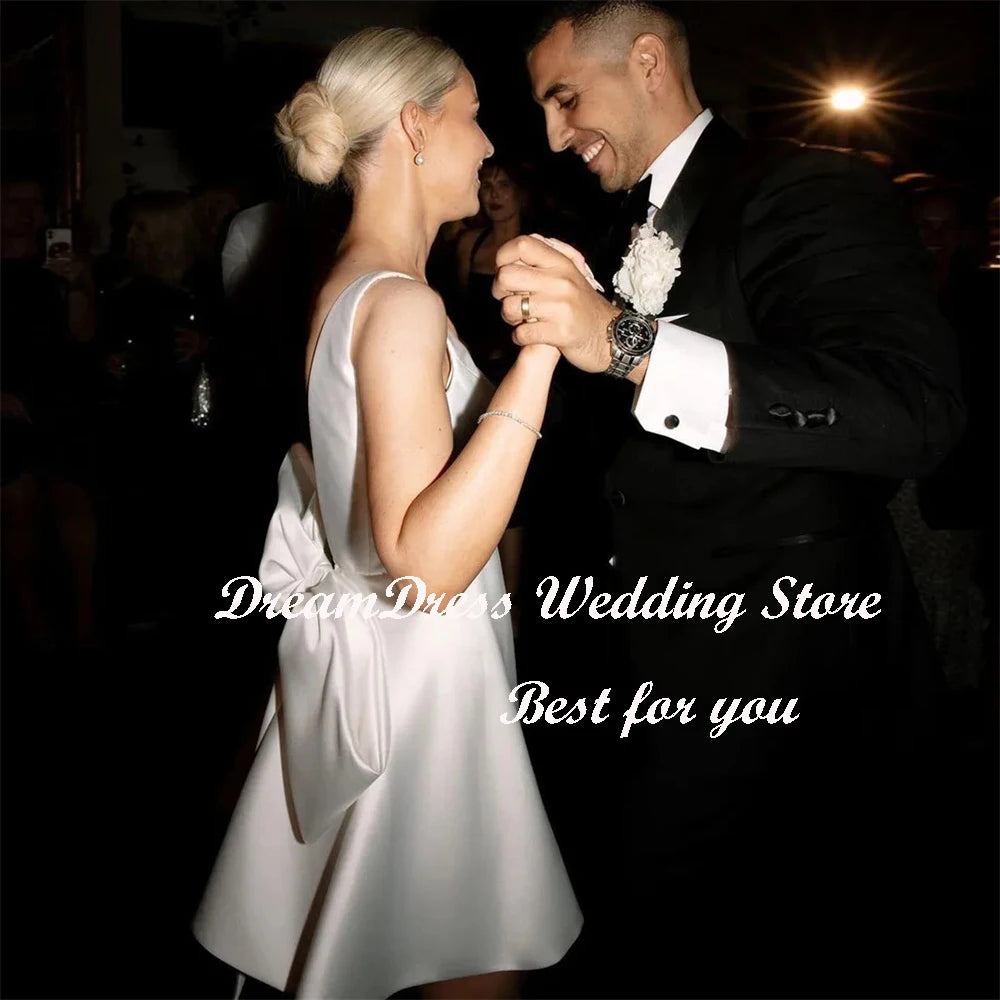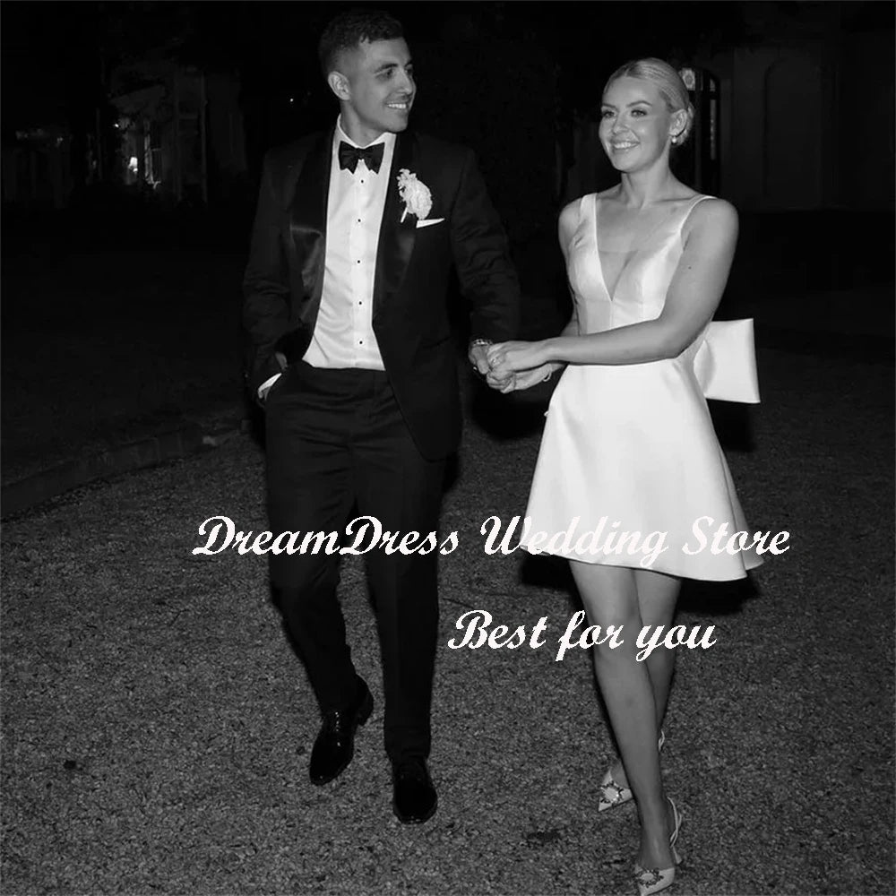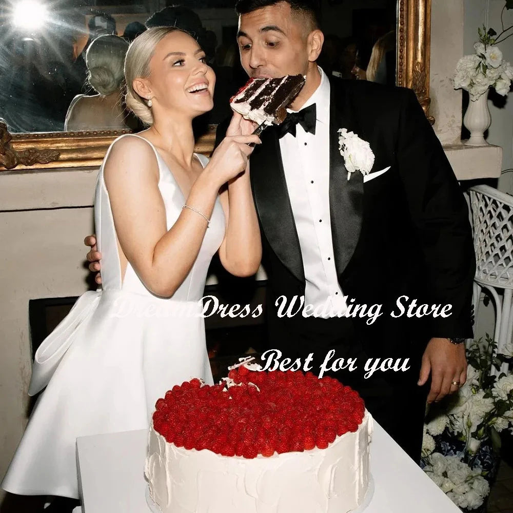 White Bridesmaid Dresses: Wedding Dress Big Bow V Neck Backless A-Line Bridal Gown – Elegance Redefined