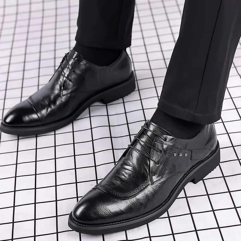 Discover the perfect blend of sophistication and comfort with our Men’s Genuine Leather Business Formal Oxfords. Crafted for the modern gentleman, these men’s dress shoes are designed to enhance your wardrobe and make a lasting impression. Whether you’re attending a high-profile business meeting or a formal event, our men’s oxford dress shoes offer unmatched elegance and versatility.