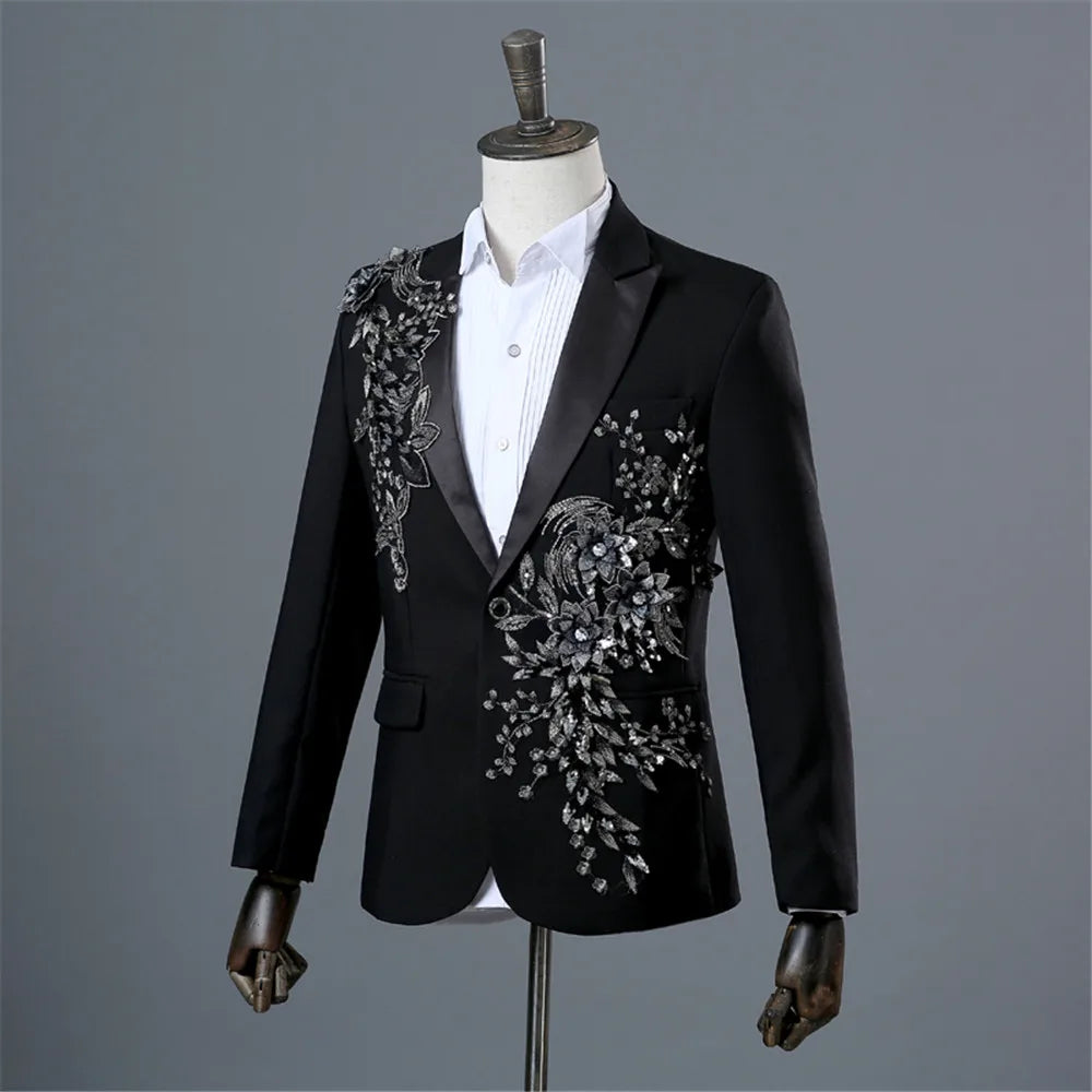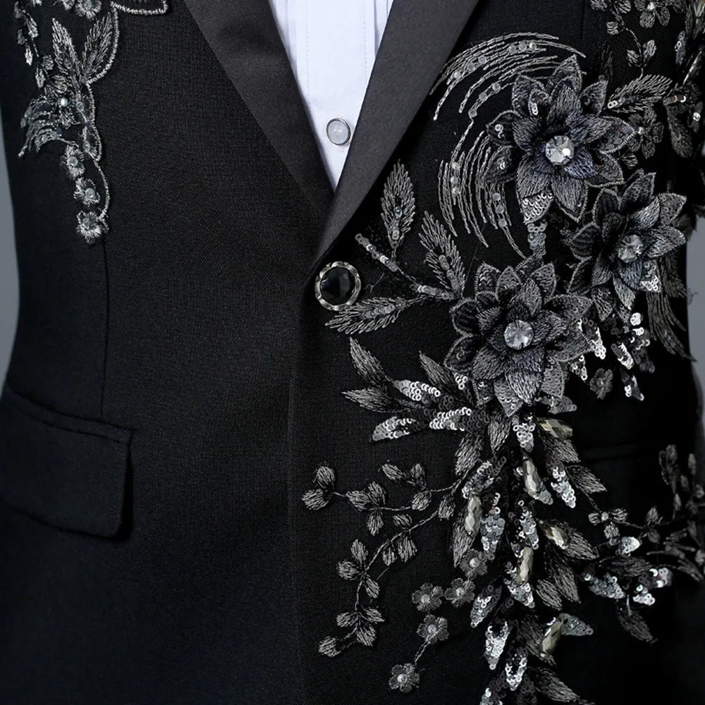 Coastal Grandeur: Elegant Appliquéd Two-Piece Men's Suit for Your Beach Wedding Banquet