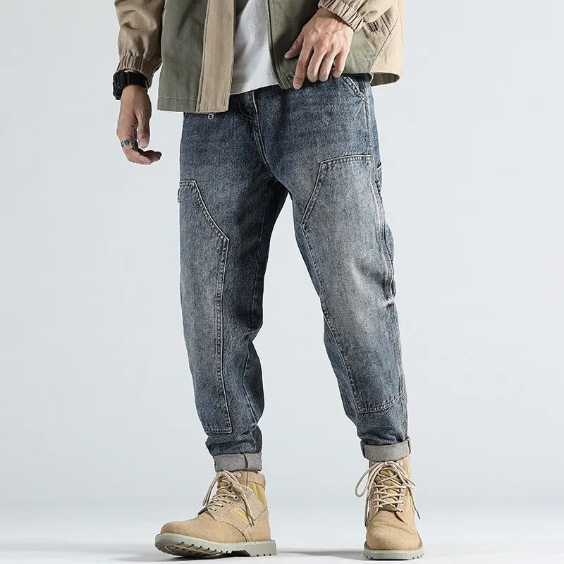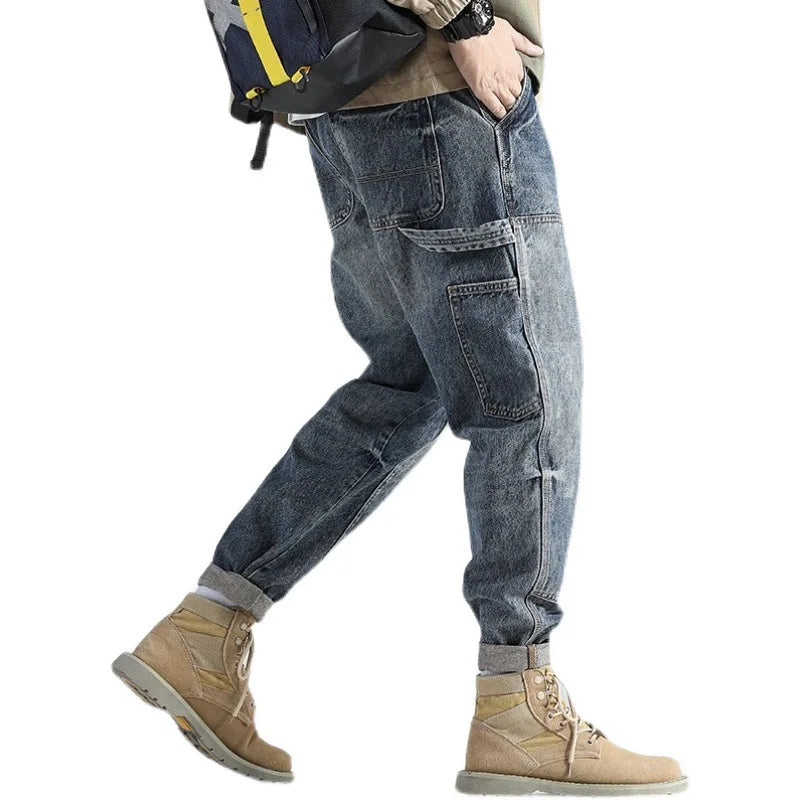 Fashion Retro Straight Loose Large Size Cargo Jeans – Men's Brand Autumn Collection