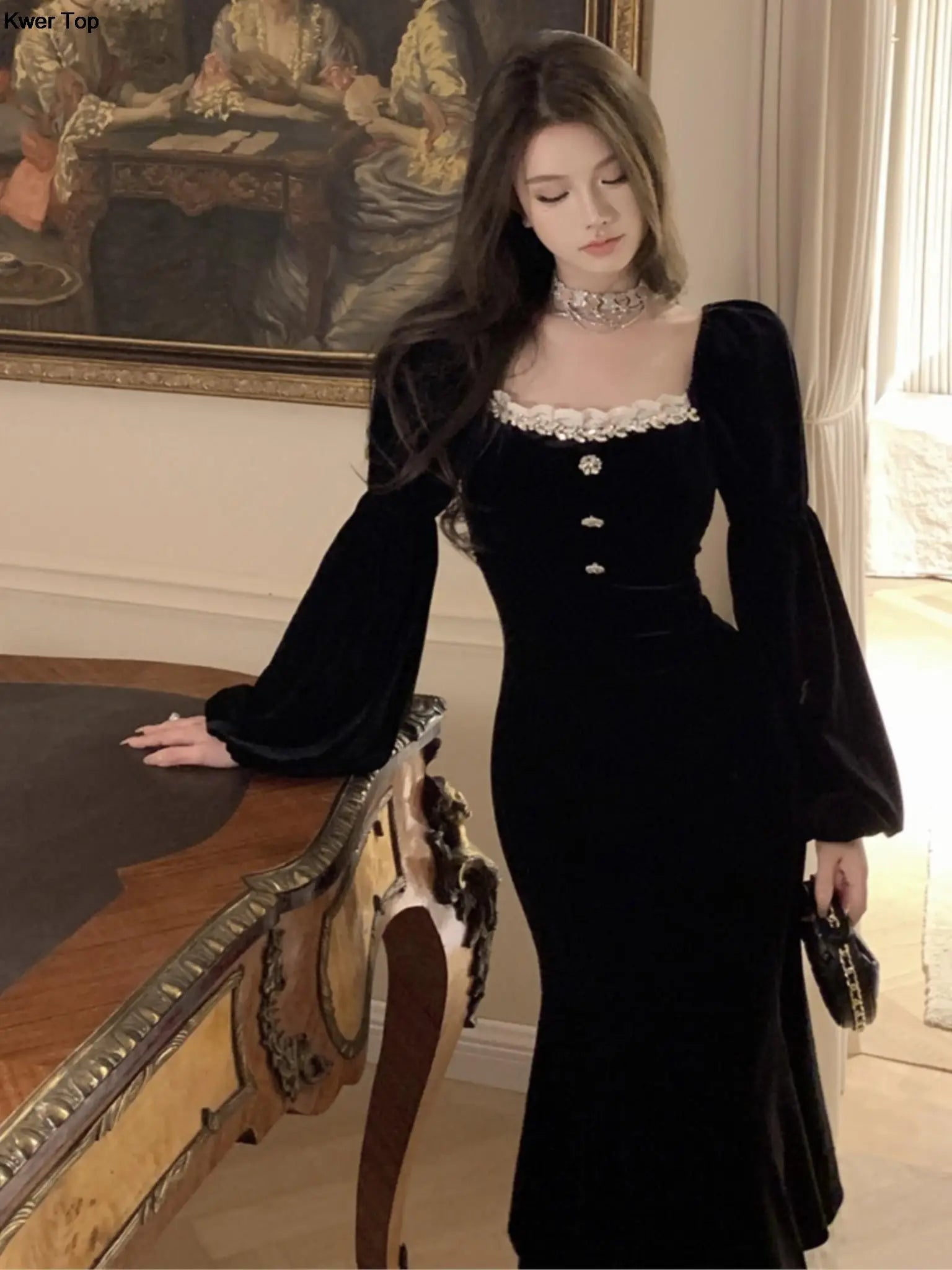 Crafted with the finest materials, our evening dresses for women are a testament to quality and style. The lantern sleeves add a touch of drama and elegance, while the mermaid silhouette accentuates your curves, creating a stunning and flattering fit. The sophisticated design ensures that you'll stand out in any crowd, making it the ideal choice for party dresses for women.