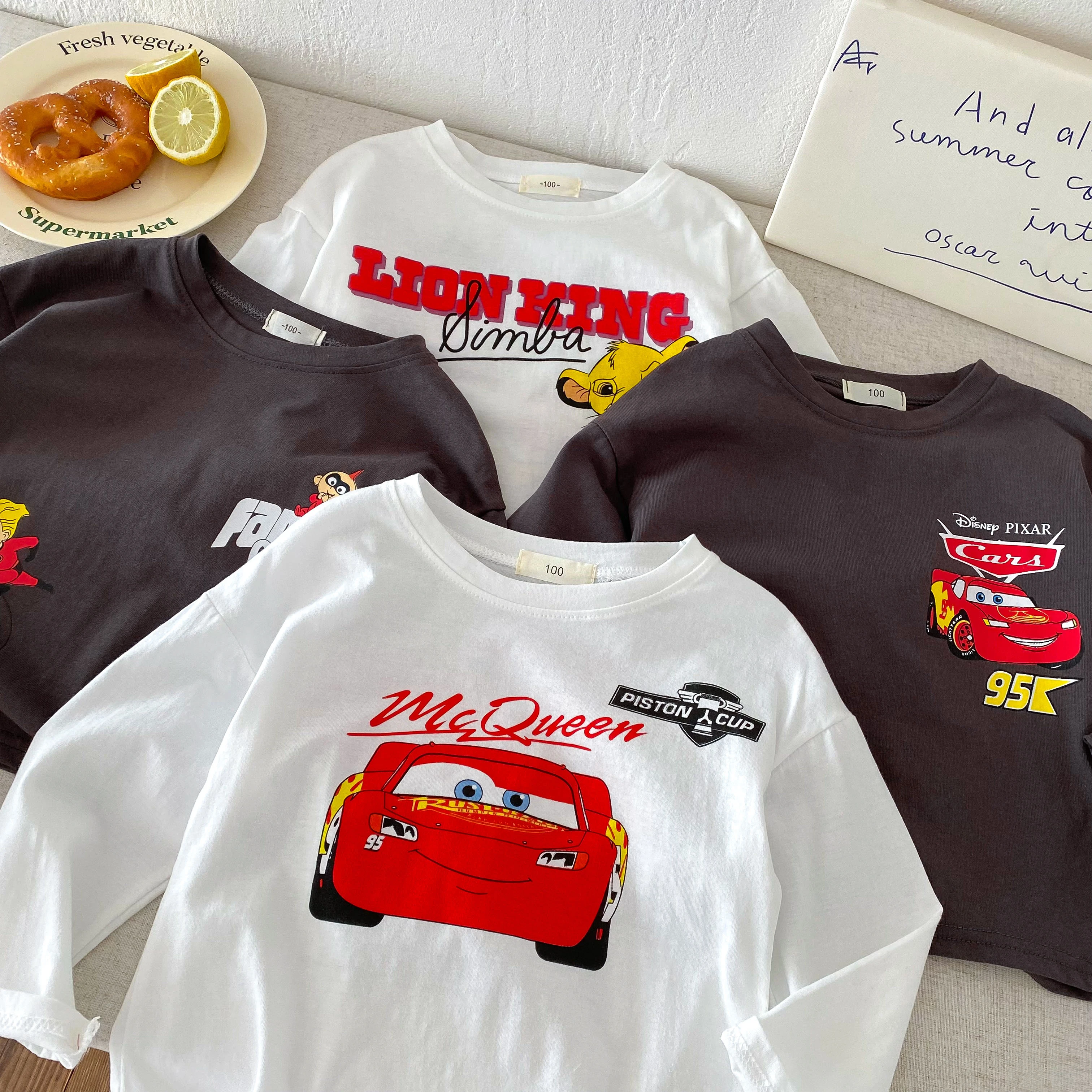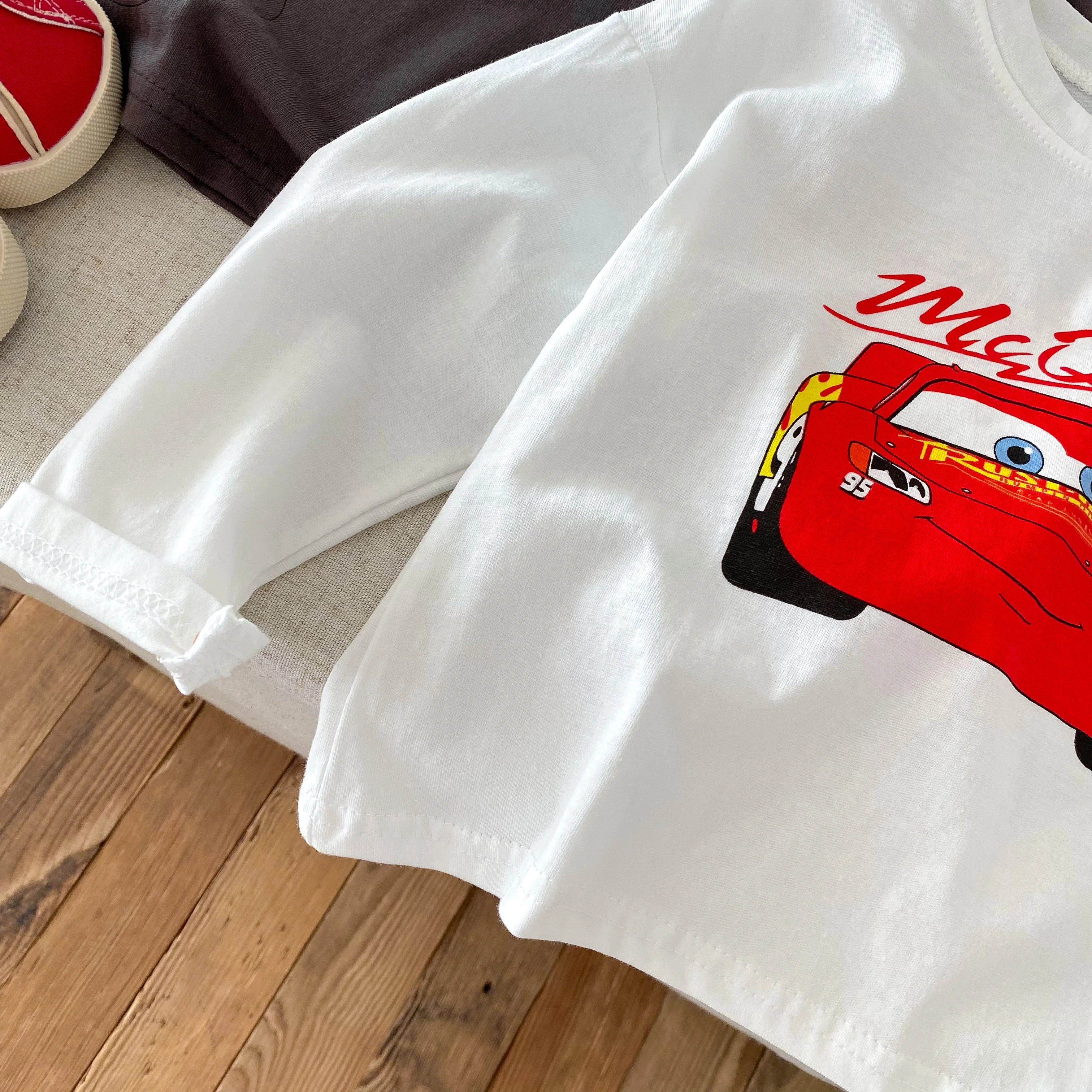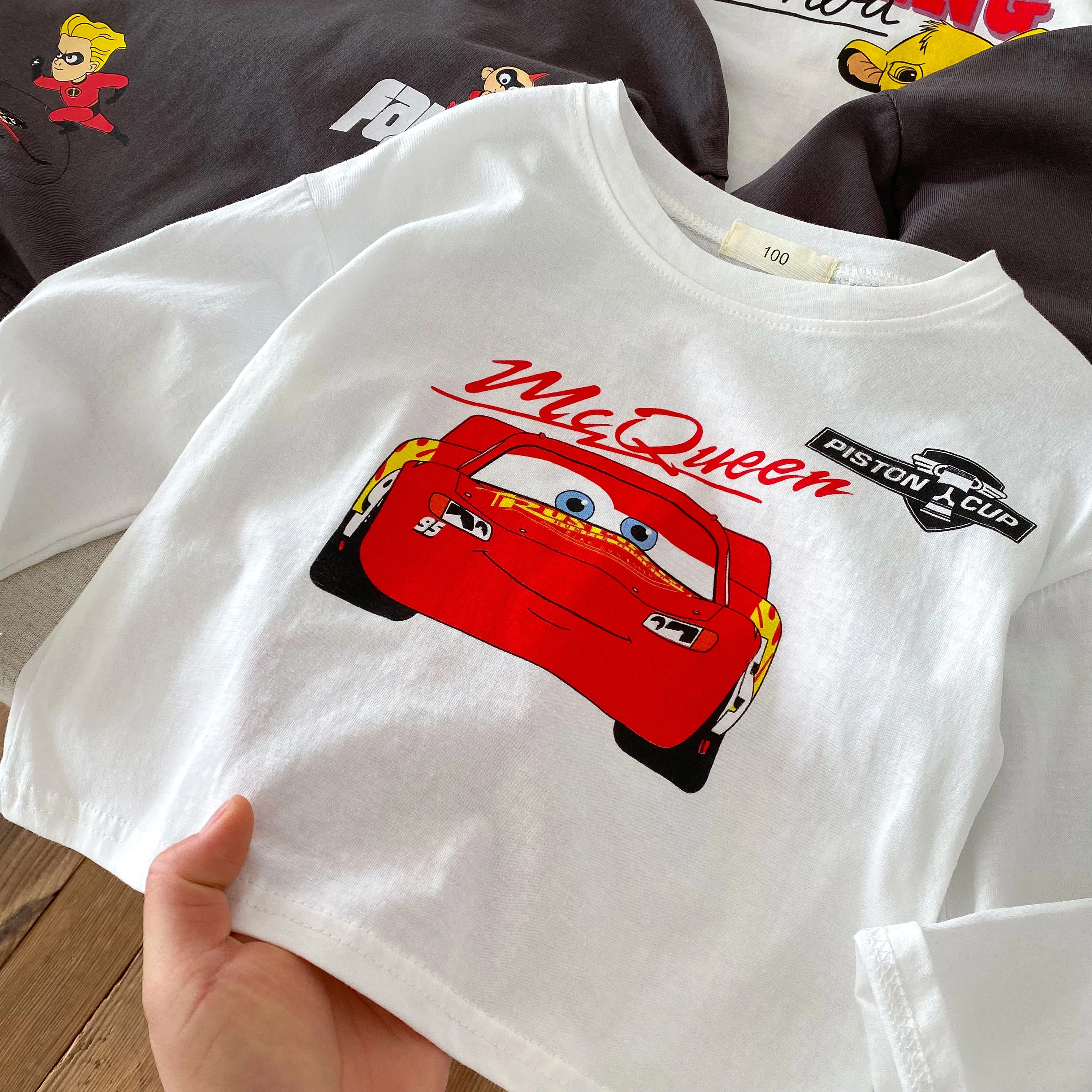 Fashion New Cartoon Car Boys Long Sleeved T-shirts Tops Crewneck Printed Loose Casual Kids Base Shirts Children's Clothes Blouse