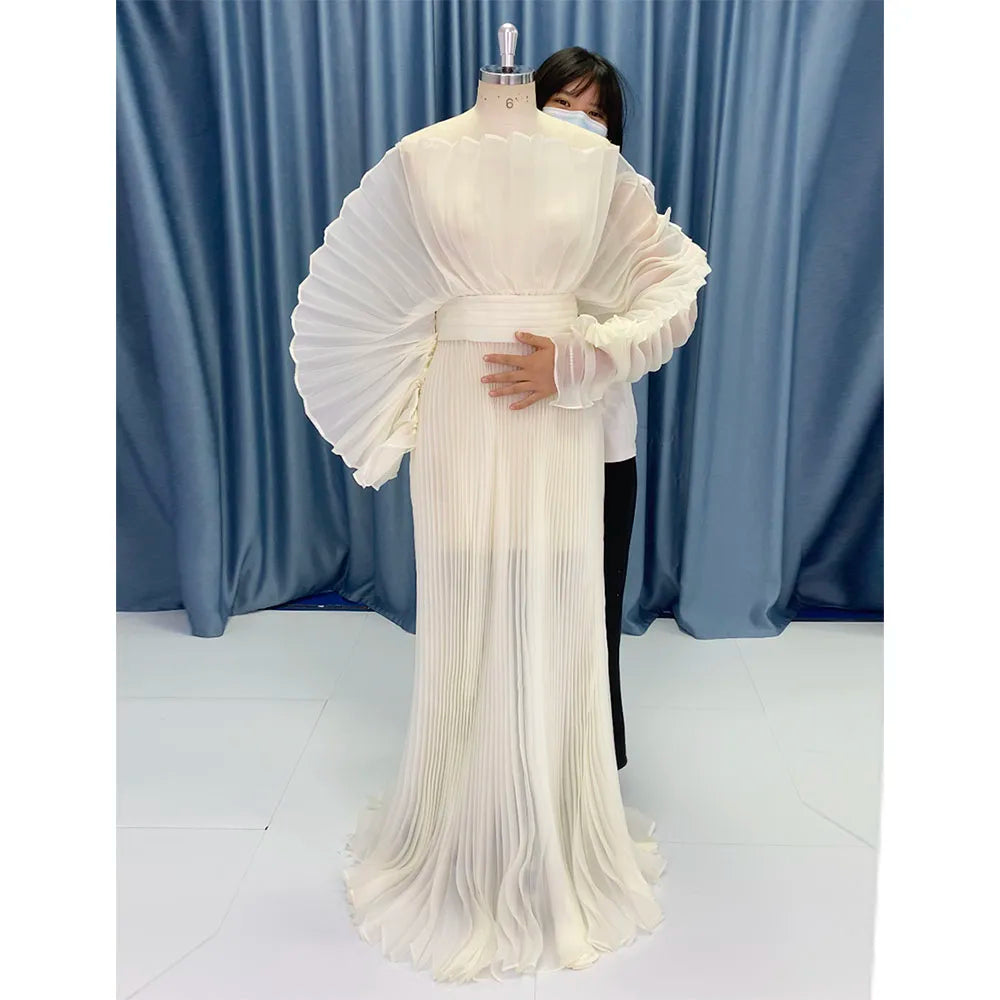 The pleated design of this dress adds movement and dimension, creating a dynamic and visually appealing look. It's a detail that enhances the overall beauty of the dress and makes it perfect for twirling and posing.