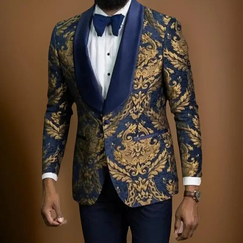 Make an unforgettable entrance with our Floral Men Suit Jacket, a stunning slim-fit wedding tuxedo blazer designed to redefine formal wear. This unique piece, featuring a captivating floral pattern and a sophisticated shawl lapel, is perfect for the modern gentleman who dares to stand out. Whether you’re a groom looking to make a bold statement, a wedding guest seeking a distinctive look, or simply someone who appreciates sartorial artistry, this jacket is your key to commanding attention and exuding confidence.
