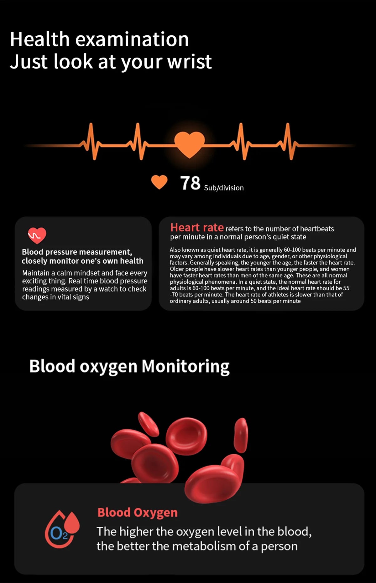 Sensors: Heart rate monitor, blood oxygen (SpO2), VO2 Max, blood pressure monitor, sleep tracking, accelerometer