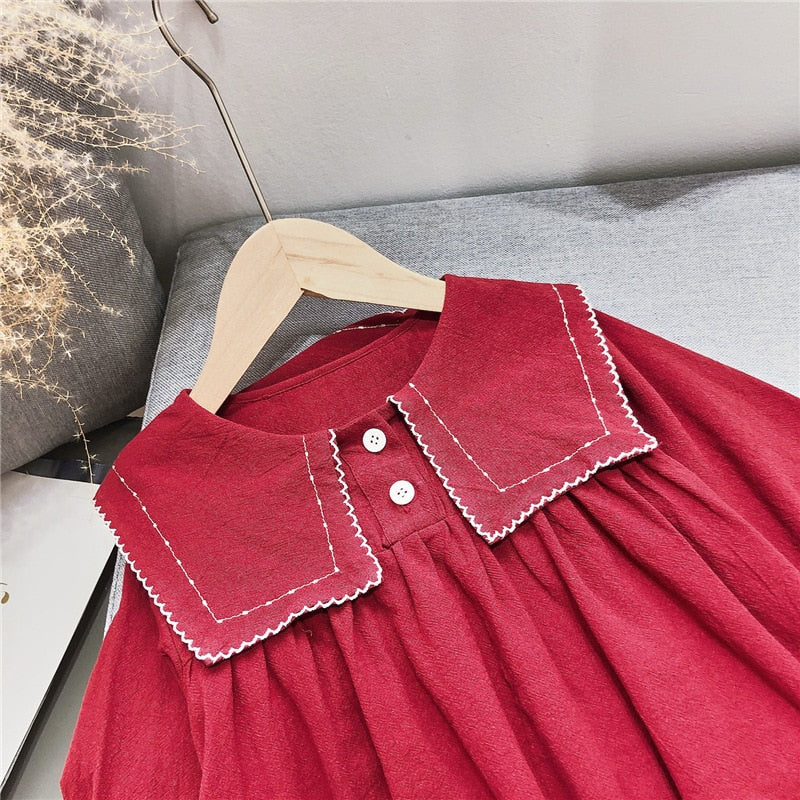 Girls Dress Autumn Big Lapel Sweet Long-Sleeved Dress Children Baby Kids
