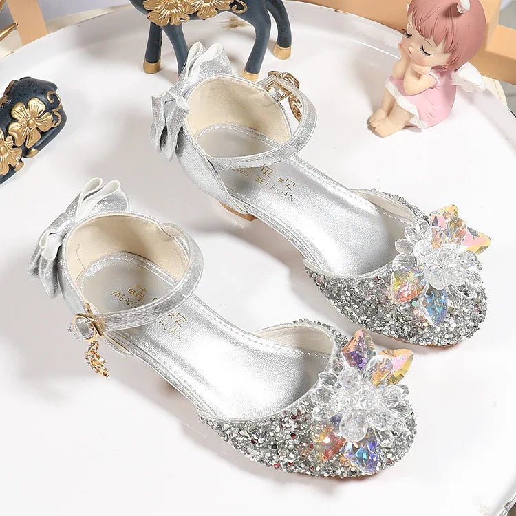 Let your little princess shine with our Girls Princess Shoes Performance Crystal Shoes Summer Children High Heels. These stunning high heels are perfect for any special occasion, from performances to parties. The crystal decorations add a touch of sparkle, making your child feel like royalty.