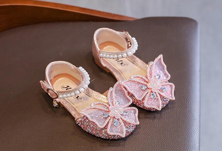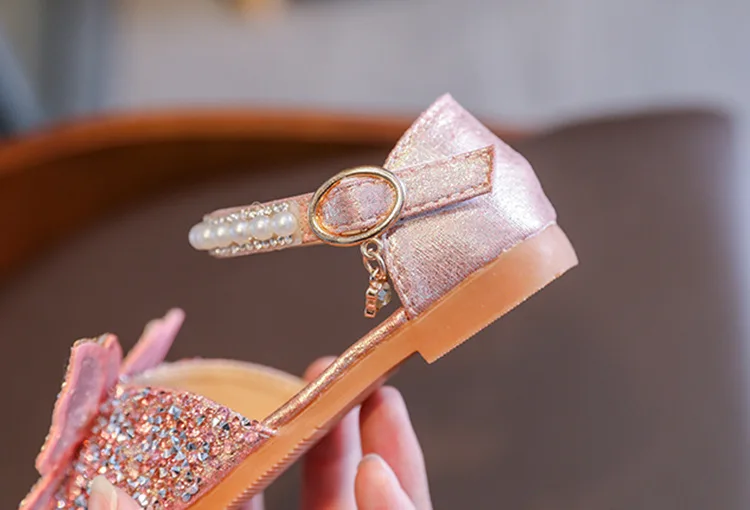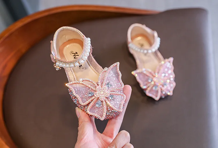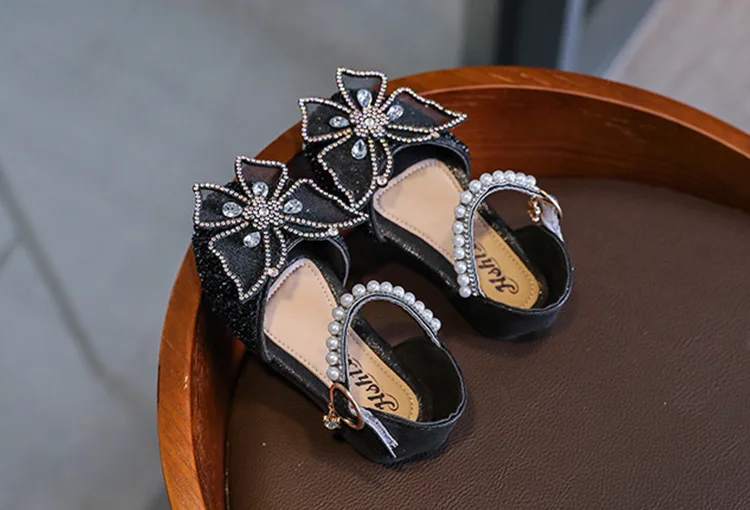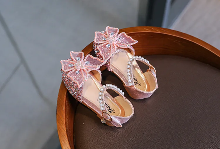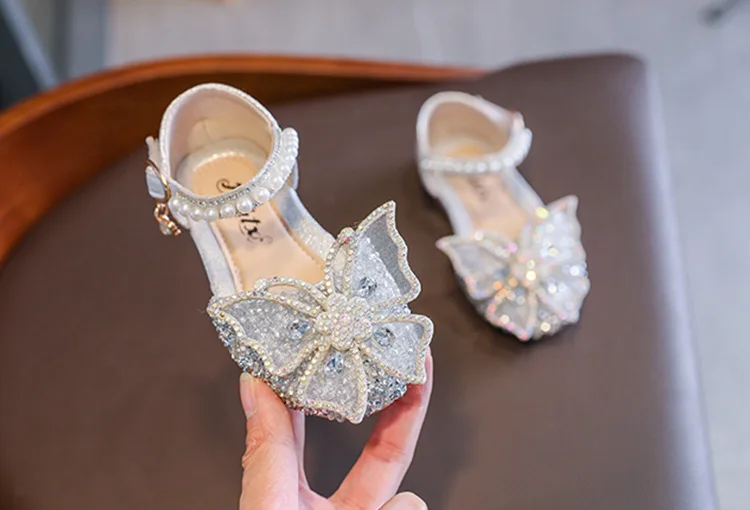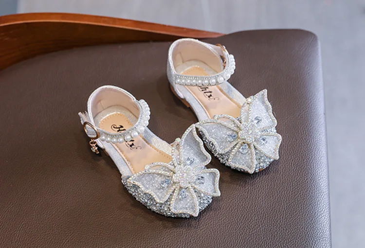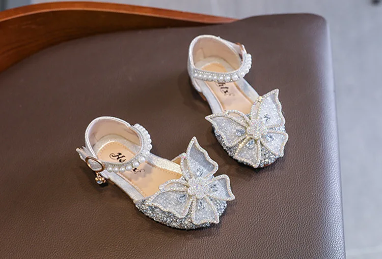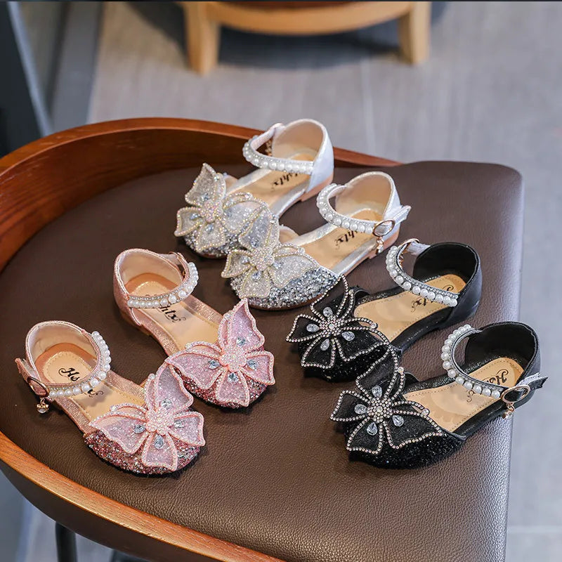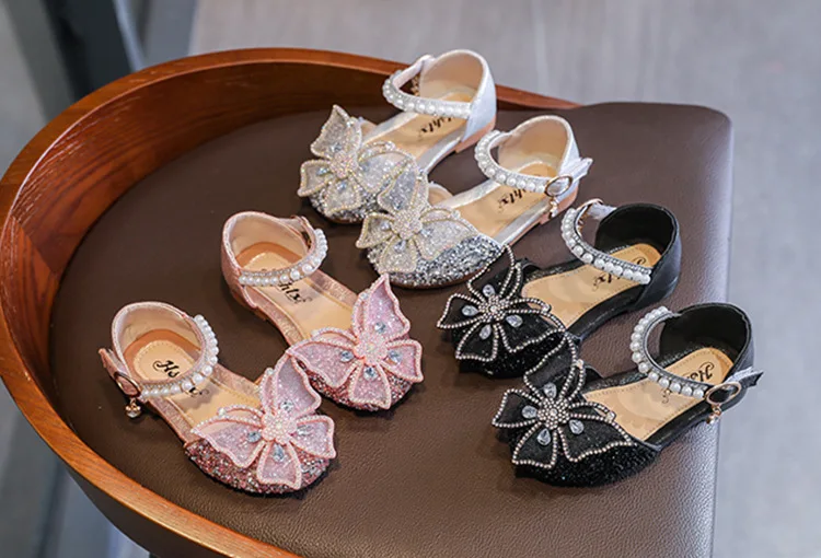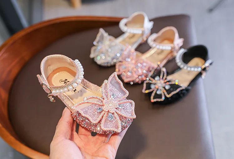 Girls Sandals 2023 Summer New Fashion Bow Princess Shoes Baby Soft Sole Bright Diamond Dance Shoe Performance Shoes
