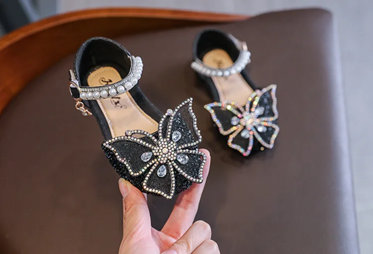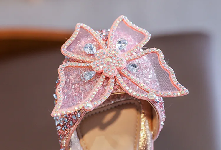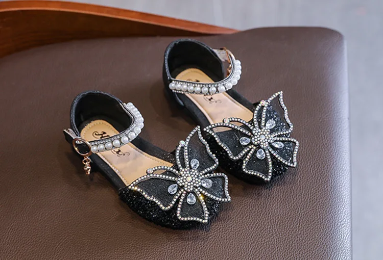 Fashion Bow Princess Shoes Baby Soft Sole Bright Diamond Dance Shoe