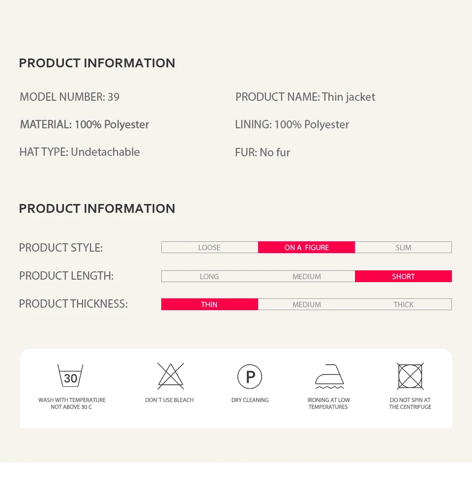 Product Name: Women Autumn Thin Parka